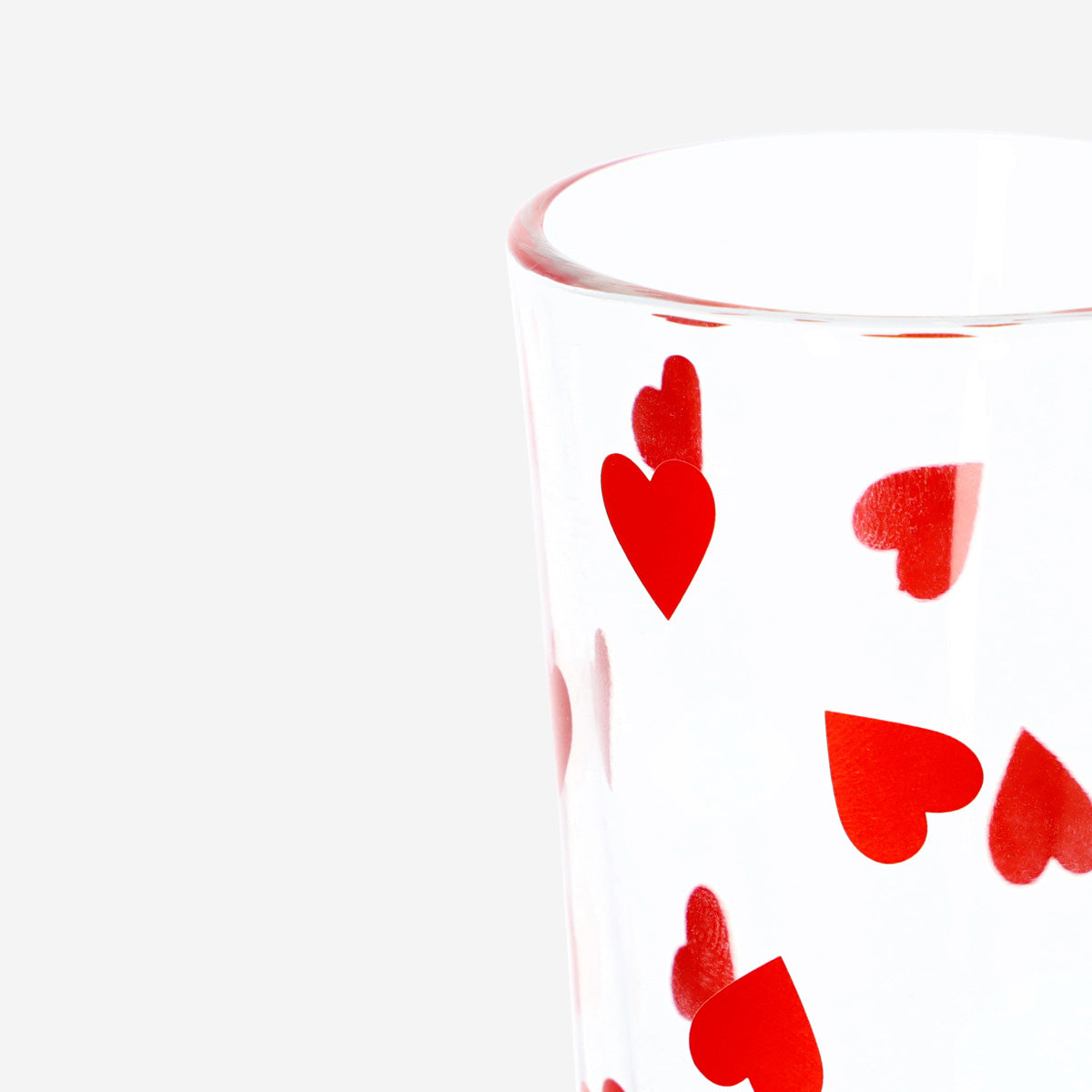 Kırmızı Kalpli Cam Su Bardağı 220 ml, günlük kullanım için ideal olduğu gibi, Sevgililer Günü gibi özel günlerde de mükemmel bir tercihtir. Pratikliği ve eğlenceli tasarımı ile mutfak gereçlerinize hoş bir katkı sağlar. Hem kendi kullanımız için hem de sevdiklerinize anlamlı bir hediye olarak tercih edilebilecek bu bardak, her içeceği özel kılar.