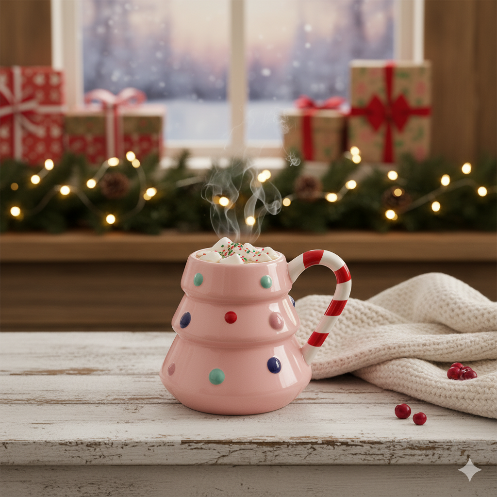 Bu pembe yılbaşı ağacı kupası, mutfağına tatil neşesi katmak ve festivallerde ya da rahat kış sabahlarında kullanmak için ideal bir aksesuardır.