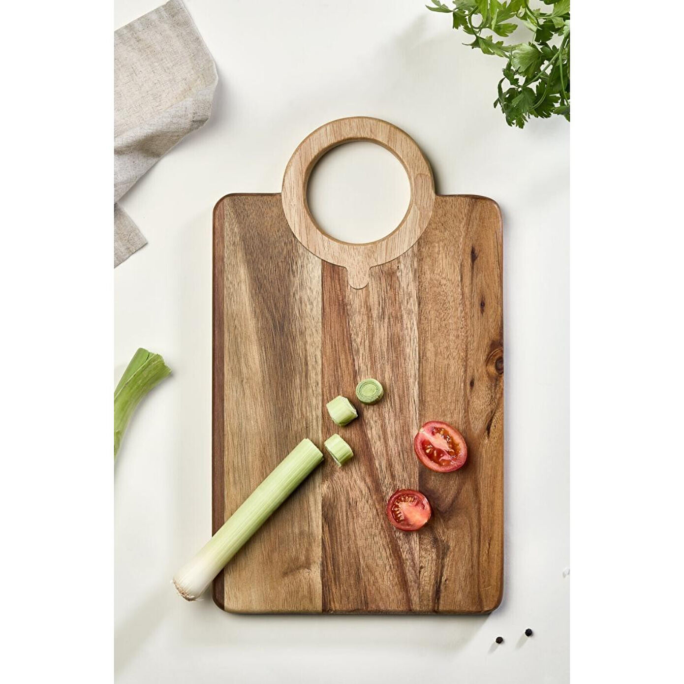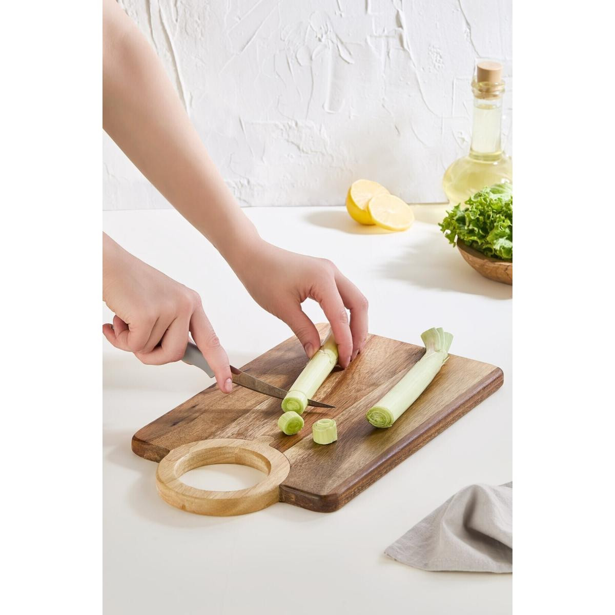 Lora Bianca'nın sizin için seçtiği Akasya Ahşap Büyük Kesme Tahtası, hem geniş yüzeyi hem de dayanıklı yapısıyla mutfakların vazgeçilmez bir parçası olacak. Bu kesme tahtası, sebzelerden ete, meyvelerden ekmeğe kadar tüm kesme işlemleriniz için ideal bir seçenektir.