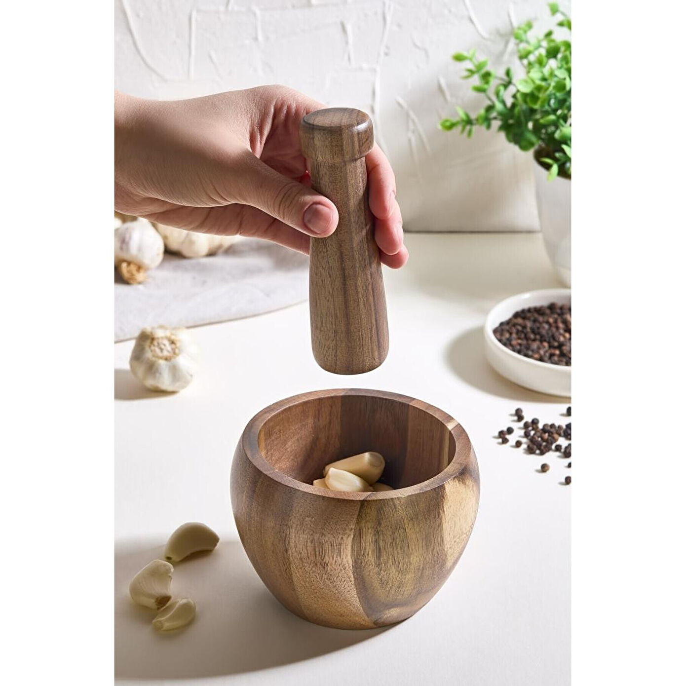 Akasya Ahşap Havan - Sarımsak Döveceği