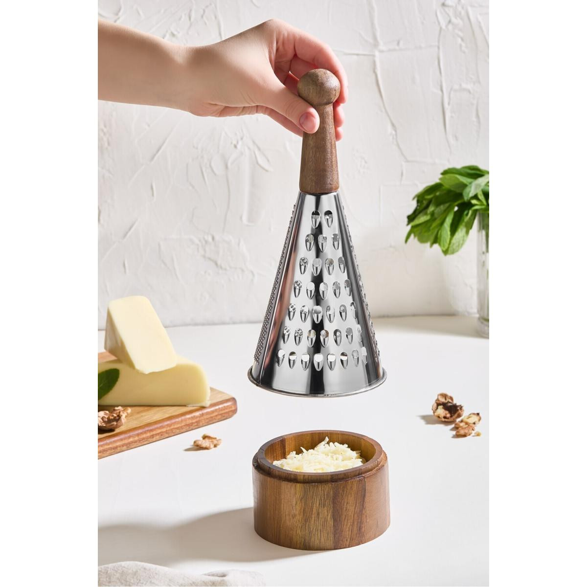 Akasya Ahşap Saplı Paslanmaz Çelik Rende - Hazneli