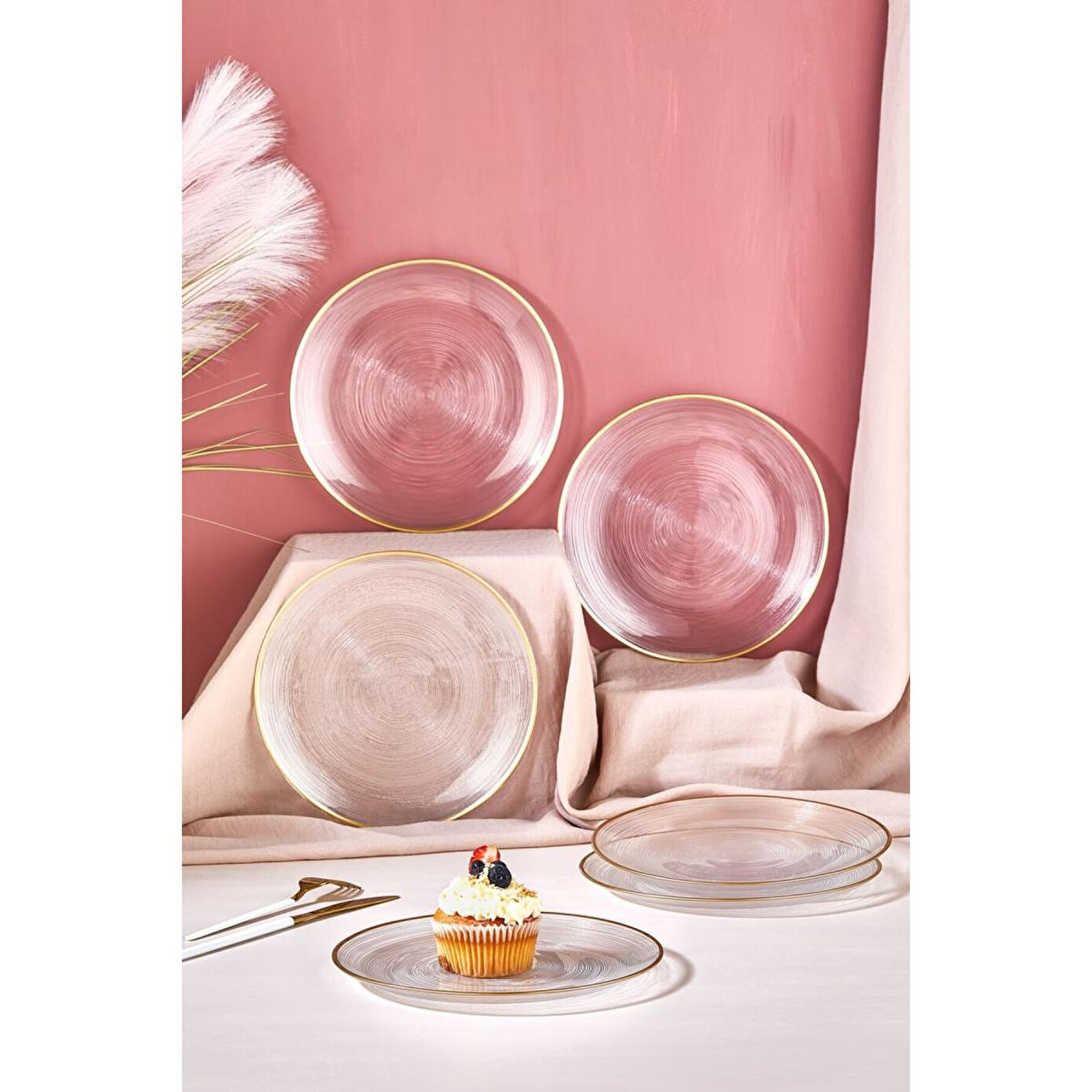 Ares Tabak Seti, altın rim detayları sayesinde klasik ve modern çizgiyi mükemmel bir uyum içinde sunar. Şeffaf camın sadeliği ve altın yaldızın ihtişamı, bu tabakları her türlü pasta, kek ve tatlı sunumunuz için ideal kılar. Kaliteli cam malzemesi ile hem dayanıklı hem de uzun ömürlü olan bu set, misafirlerinizi etkilemenin en zarif yolunu sunar.