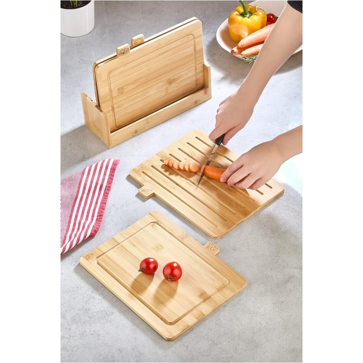 Bambu 4'lü Standlı Kesme Tahtası Seti