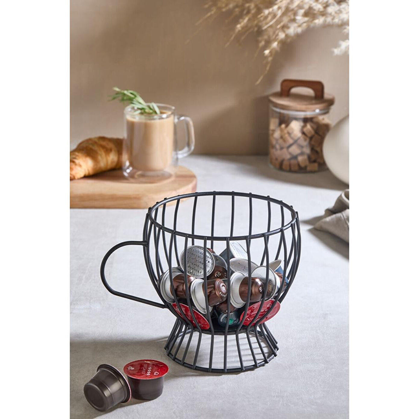 Lora Bianca Çok Amaçlı Tel Mutfak, Banyo Organizeri – Kapsül Kahve Standı & Meyve & Atıştırmalık Sepeti Siyah