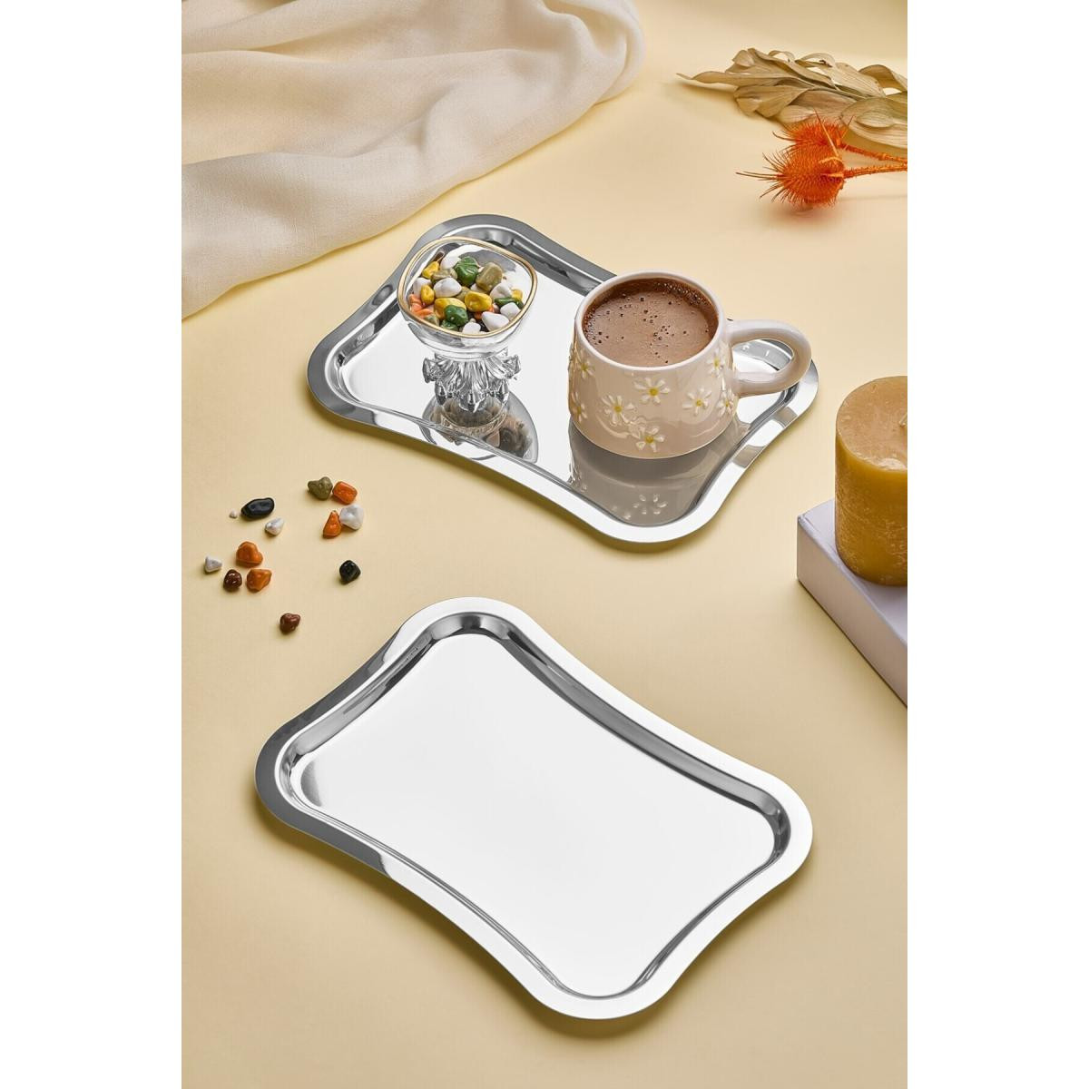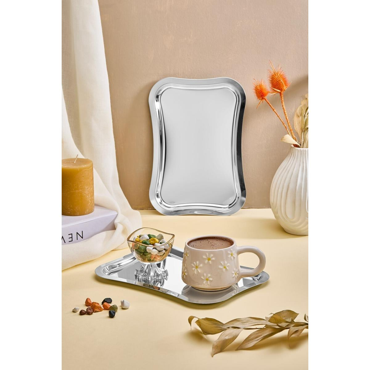 Lora Bianca Dikdörtgen Paslanmaz Çelik 6’lı Gümüş Kahve, Çay ve Sunum Servis Tepsisi