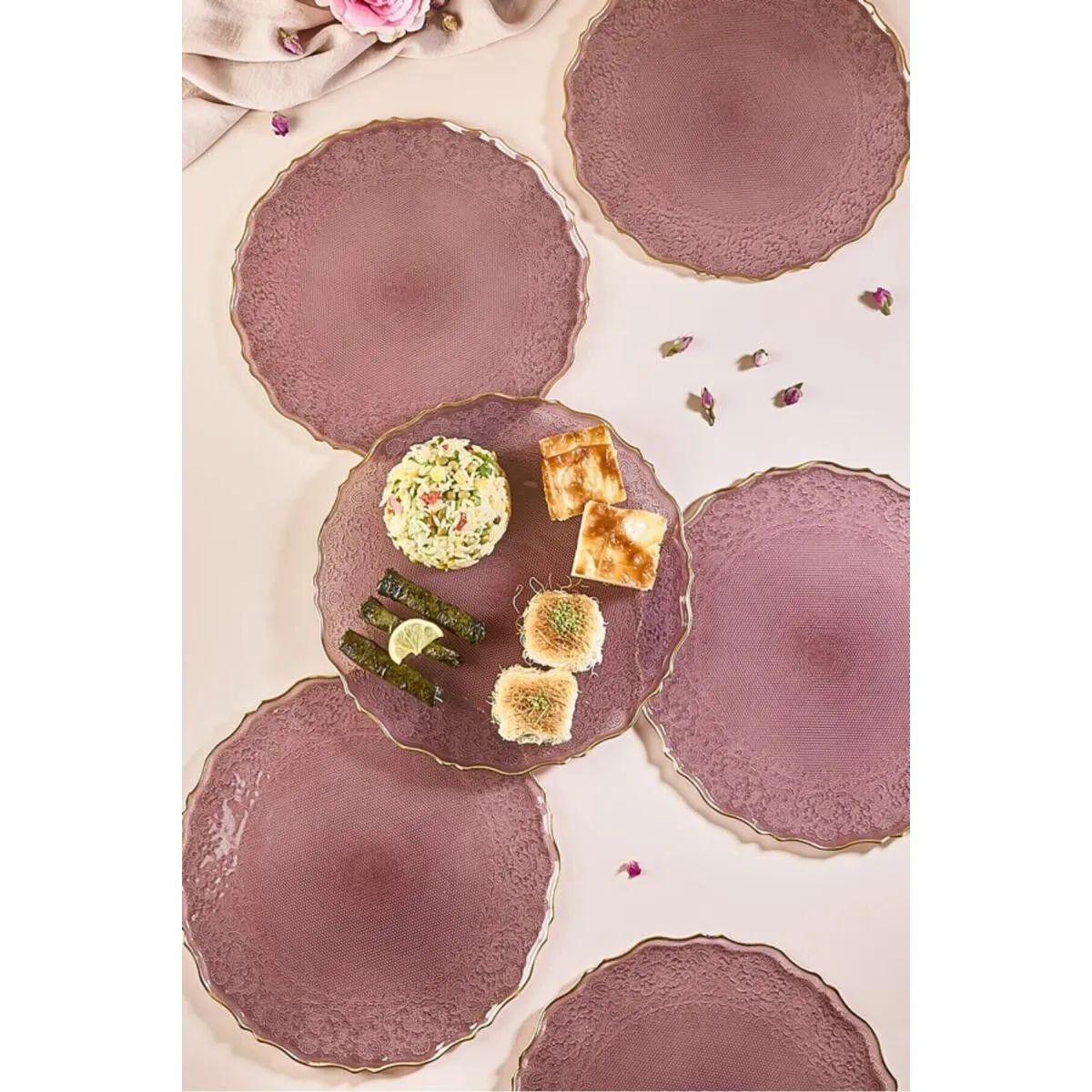 Lora Bianca Goblen 28 Cm 6 Parça Servis Sunum Tabağı Seti Mürdüm