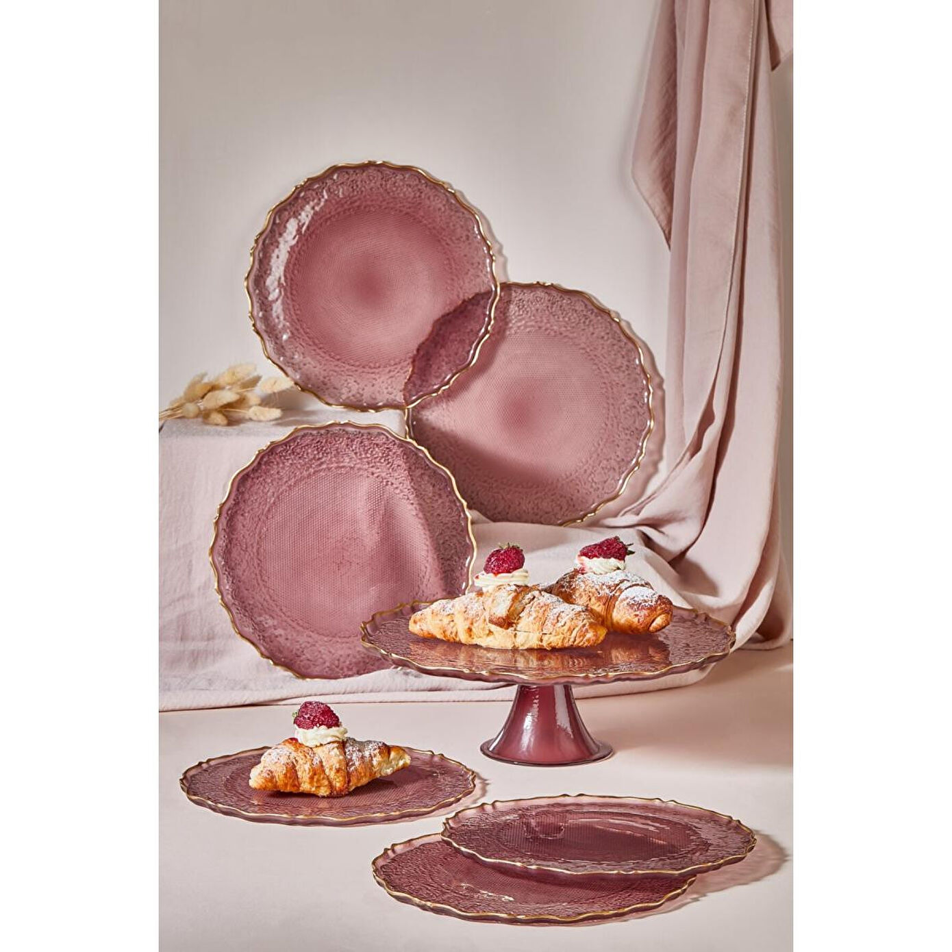 Lora Bianca Goblen 7 Parça Pasta/kek/tatlı Sunum Tabağı Seti Mürdüm