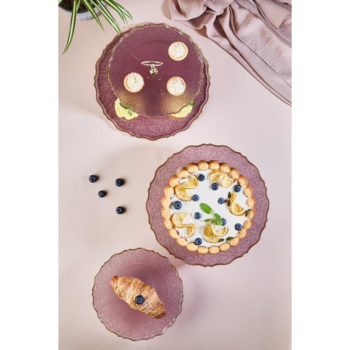 Lora Bianca Goblen Mürdüm Renk 5 Parça Pasta/tatlı Sunum Ve Servis Seti Mürdüm