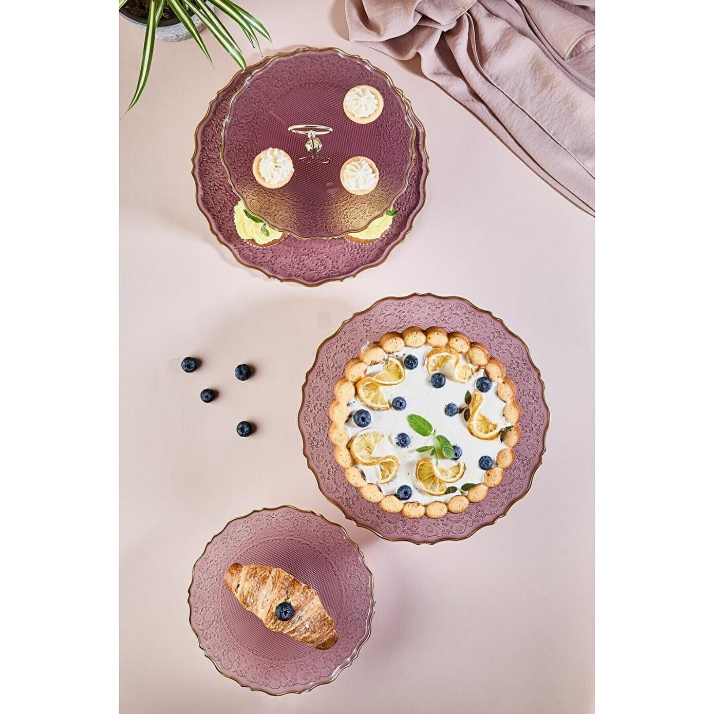 Lora Bianca Goblen Mürdüm Renk Sunum Seti ile ikramlarınıza lüks bir dokunuş ekleyin!