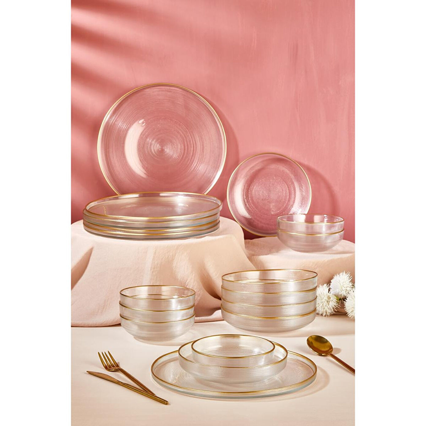 Şeffaf cam ve altın rim desenleriyle sofistike bir görünüm6 kişilik kullanım için ideal setServis, yemek tabakları ve çorba kaselerinden oluşan kapsamlı setÖzel davetlerden günlük sofralara her ortamda kullanılabilirAltın rim detaylarıyla lüks bir dokunuş sunarDayanıklı ve uzun ömürlü cam malzemeLora Bianca IP 18 Parça Yemek Takımı, sofralarınıza estetik bir dokunuş katarak her anı daha özel hale getirir. Altın rim desenleriyle şıklığı vurgulayan bu set, özel misafirlerinizi ağırlarken ya da günlük öğünlerinizi güzelleştirirken ideal bir tercihtir. Hem işlevselliği hem de göz alıcı tasarımıyla yemek keyfinizi bir üst seviyeye taşıyın.