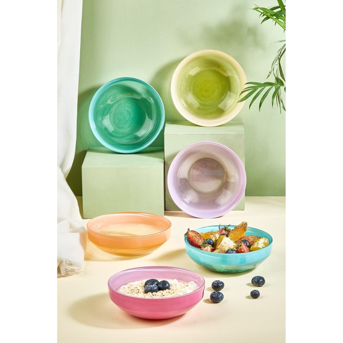 Masalarınıza renk ve şıklık katacak bu özel cam kase seti, hem sağlıklı hem de estetik bir sunum için tasarlandı! 15 cm çapında ve 6 farklı canlı renkte (sarı, turuncu, pembe, mavi, yeşil ve mor) üretilen bu şık kaseler, Lora Bianca kalitesiyle sofralarınızı aydınlatıyor.