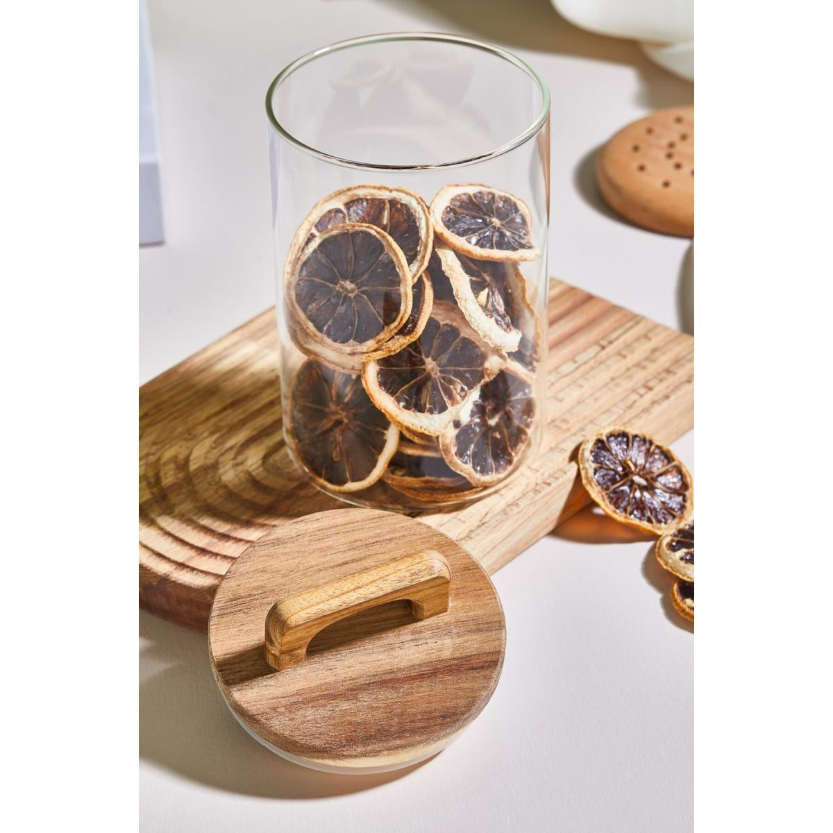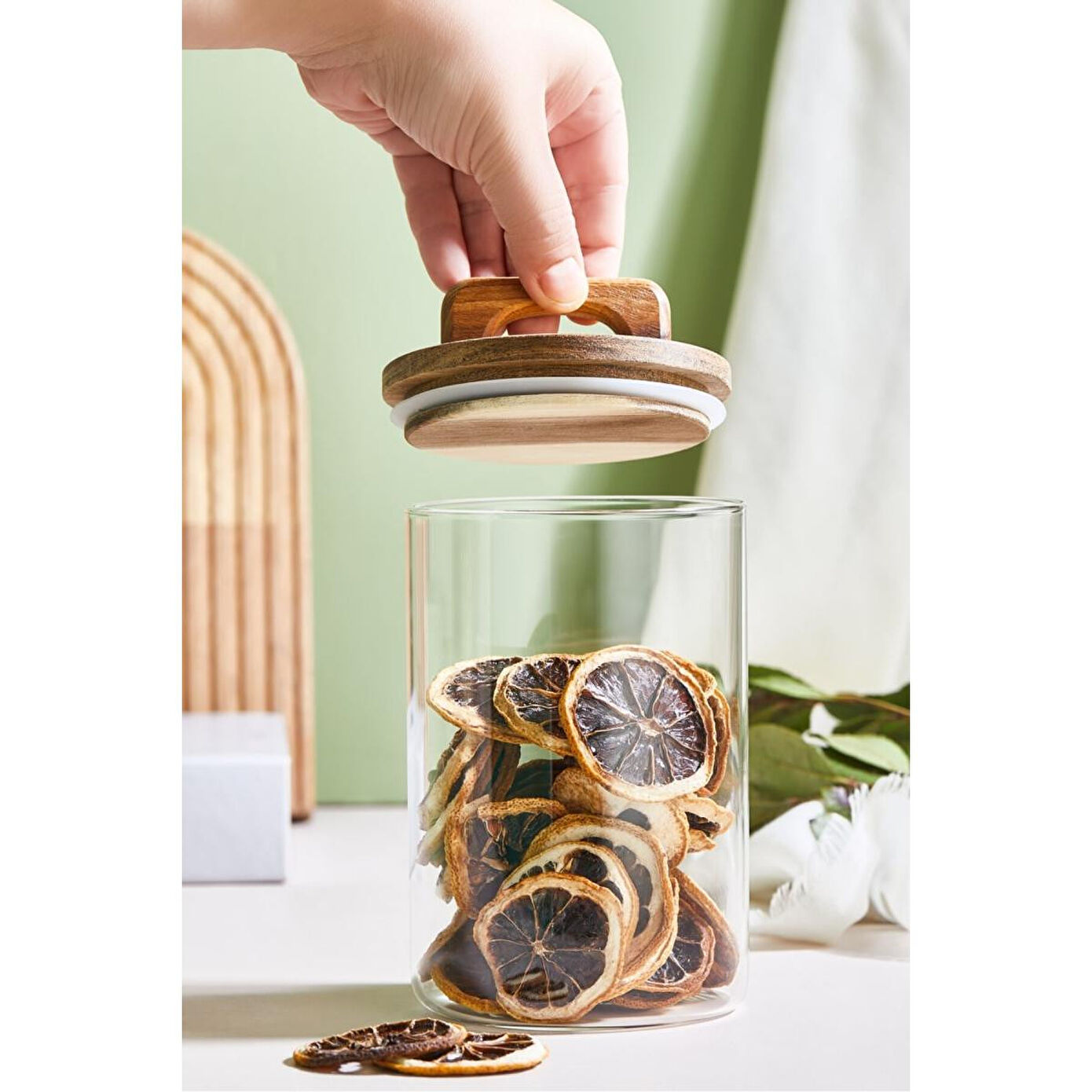 Üzerinde yer alan ahşap kaşık, pratik kullanım sunmak için özel yuvasına yerleştirilmiştir. Şeffaf cam gövdesi, içindeki ürünleri kolayca görmenizi sağlar. Doğal malzemelerden üretilen bu kavanoz, hem sağlıklı hem de dayanıklıdır.