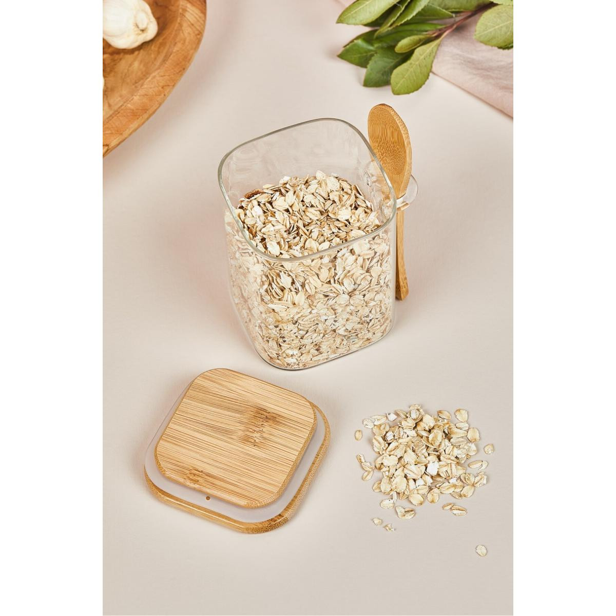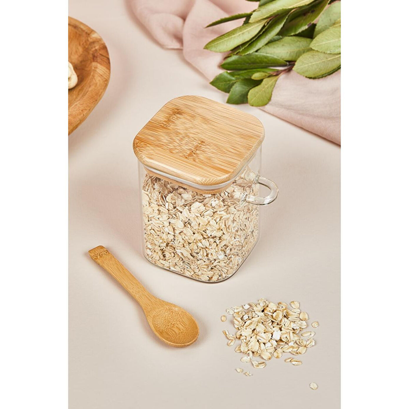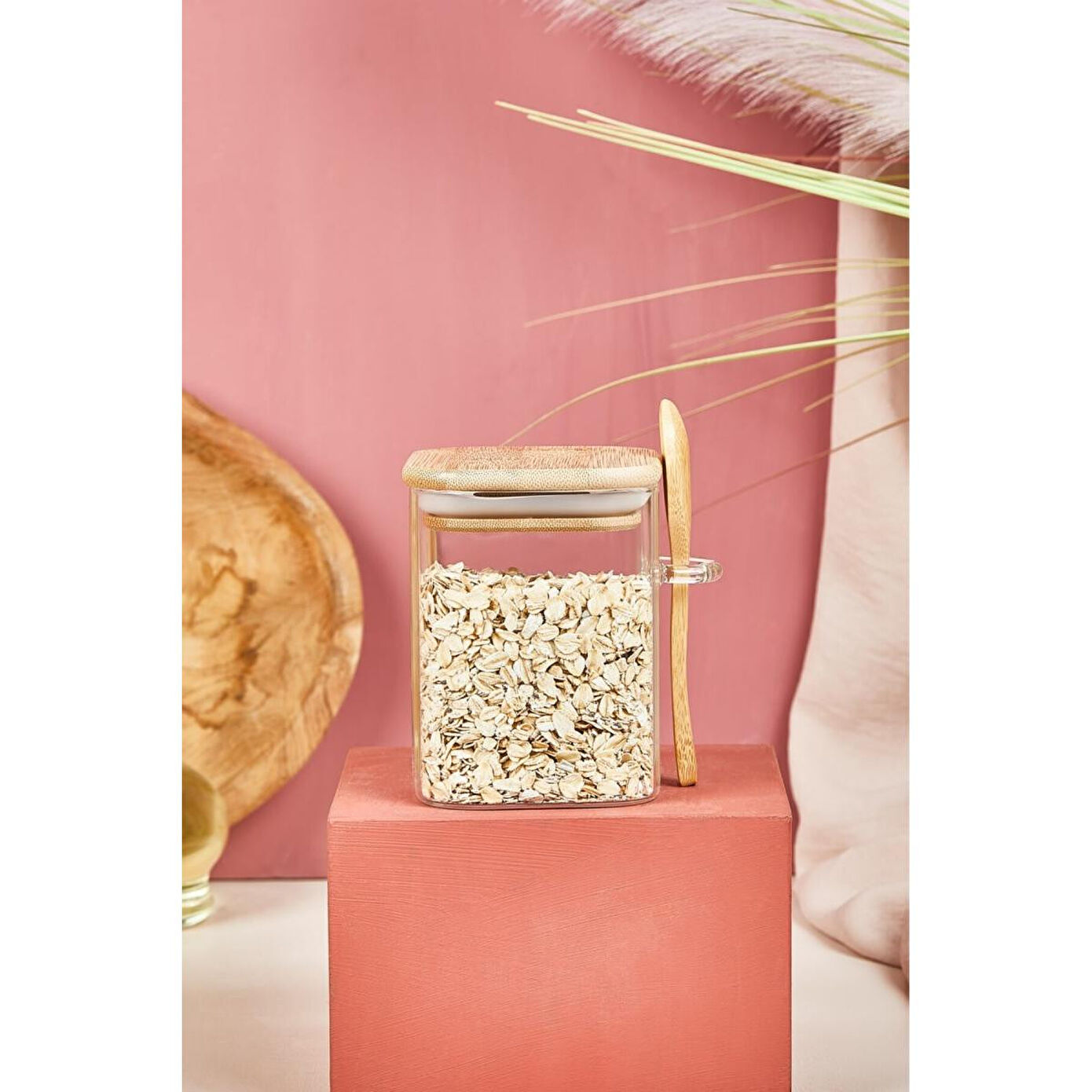 Bu çok amaçlı kavanoz; bakliyatlarınızı, kuru gıdalarınızı ya da baharatlarınızı tazeliğini koruyarak saklamanıza yardımcı olur. Hava geçirmez bambu kapağı sayesinde, içindeki yiyecekler uzun süre taze kalır. Kavanozun üzerinde yer alan kaşık yuvası ise pratik bir kullanım sunar; ölçü ve servis işlerinizi kolaylaştırır.