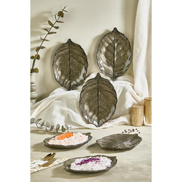 Set içerisinde yer alan 6 adet küçük yaprak formlu tabak, meze, zeytinyağlı, tatlı, atıştırmalık ve ikramlık sunumlar için ideal bir kullanım sunar. Birden fazla tabağın bir arada oluşturduğu uyumlu görünüm sayesinde sofralarınız daha düzenli ve davetkar bir hale gelir.