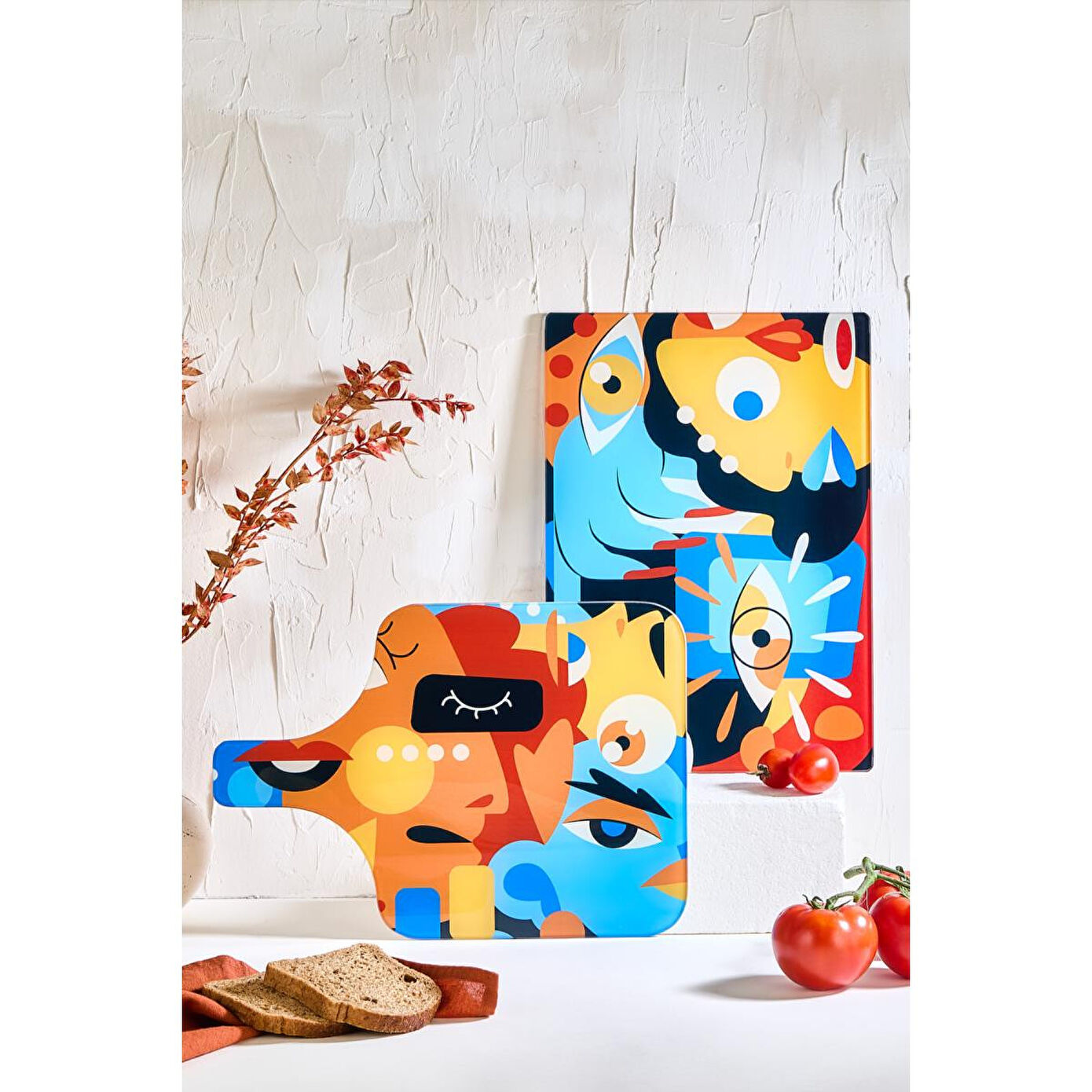 Zihninizi dinlendiren tasarımlar şimdi set oldu! Lora Bianca'nın MIND Cam Kesme Tahtası Seti, meditatif geometrik desenleri ve çılgın renk uyumuyla mutfağınıza huzur katıyor.