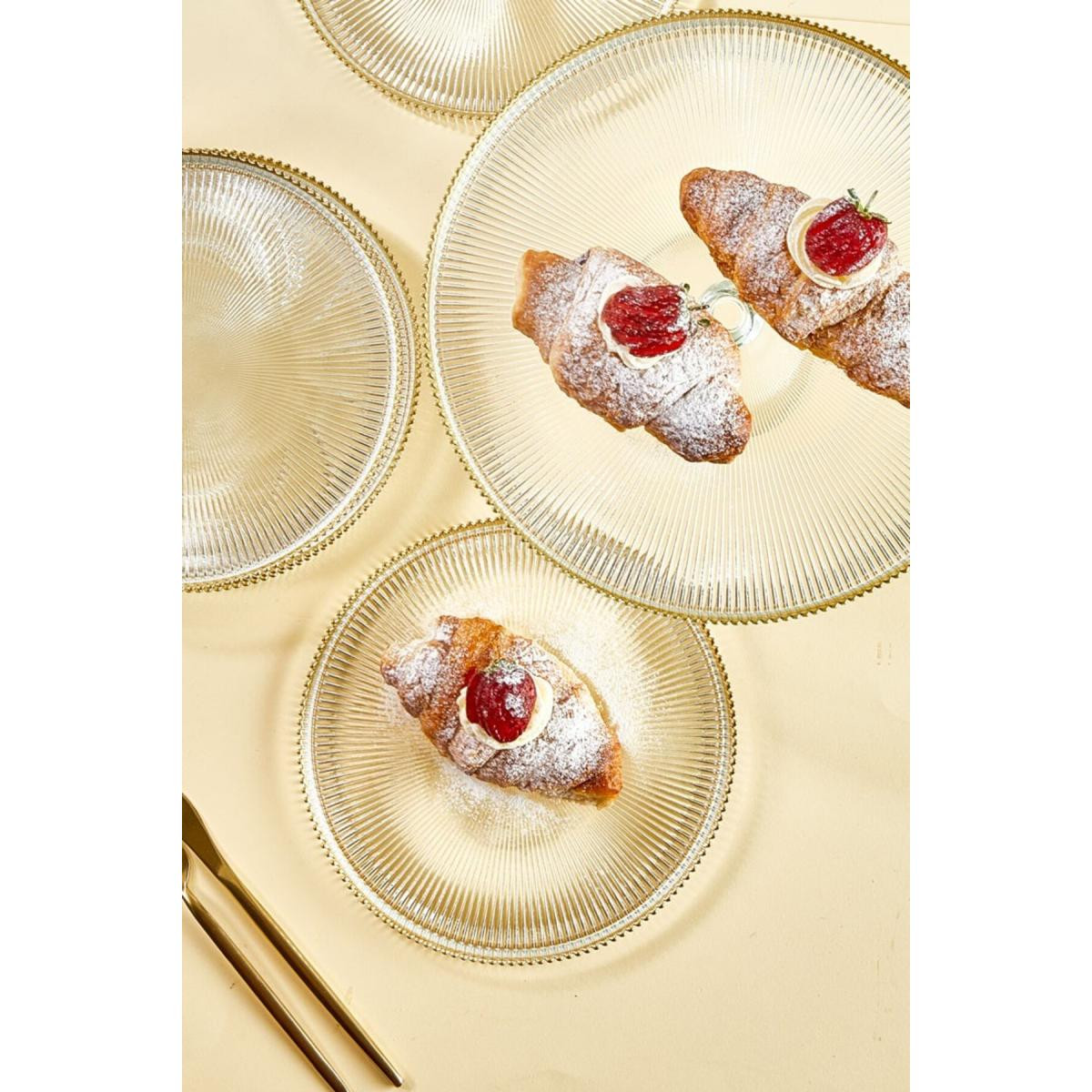 Göz alıcı sunumlar için tasarlanmış olan Lora Bianca Paris 7'li Pasta/Kek/Tatlı Sunum Tabağı Seti, sofralarınıza zarif bir dokunuş katıyor. Bu şık set, 1 adet 28 cm ayaklı servis standı ve 6 adet 21 cm çapında servis/sunum tabağından oluşmaktadır. Her bir parça, ince cam işçiliğiyle üretilmiş ve altın rim desenleriyle süslenmiştir. Şeffaf camın zarafeti ile altın detayların lüksü bir araya gelerek, misafirlerinize unutulmaz bir sunum deneyimi yaşatmanızı sağlar. Pasta, kek ve tatlılarınızı öne çıkaran bu set, hem günlük kullanımlarınızda hem de özel davetlerinizde ideal bir tercih olacak. Lora Bianca Paris Sunum Seti ile, masanızı zarif bir Paris havasıyla buluşturun ve her sunumu bir şölene dönüştürün.