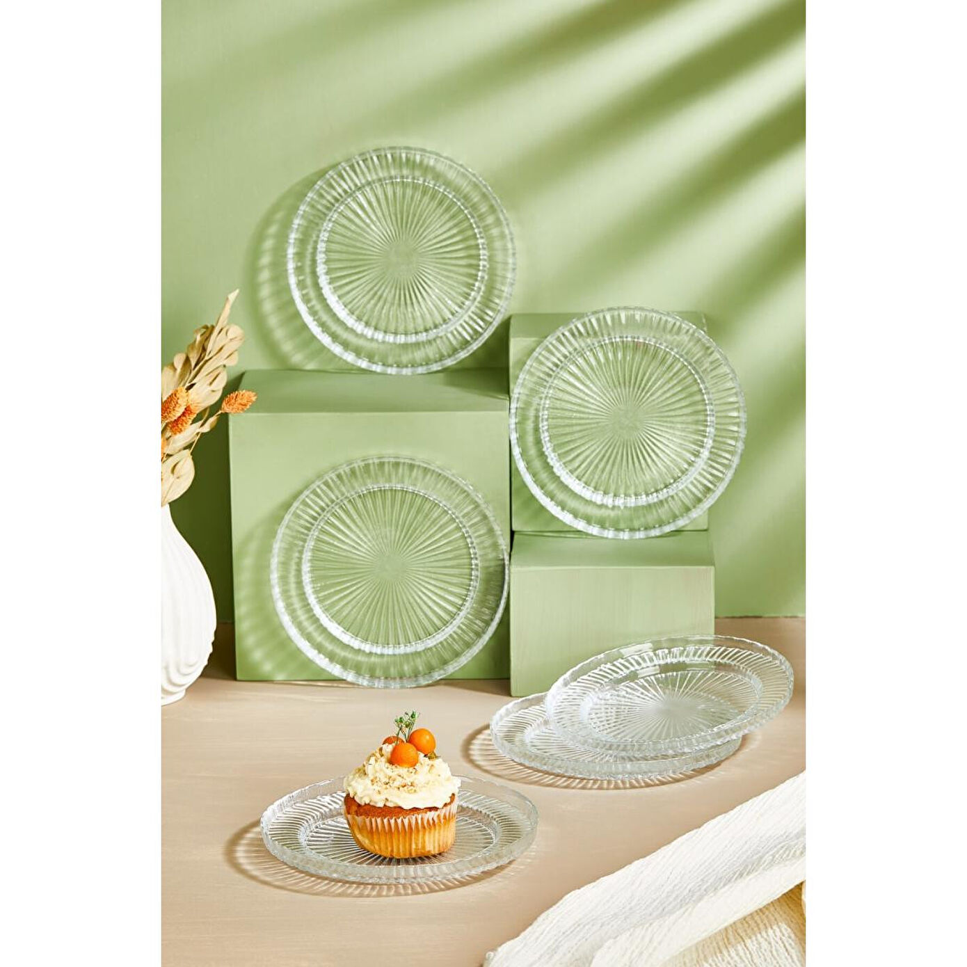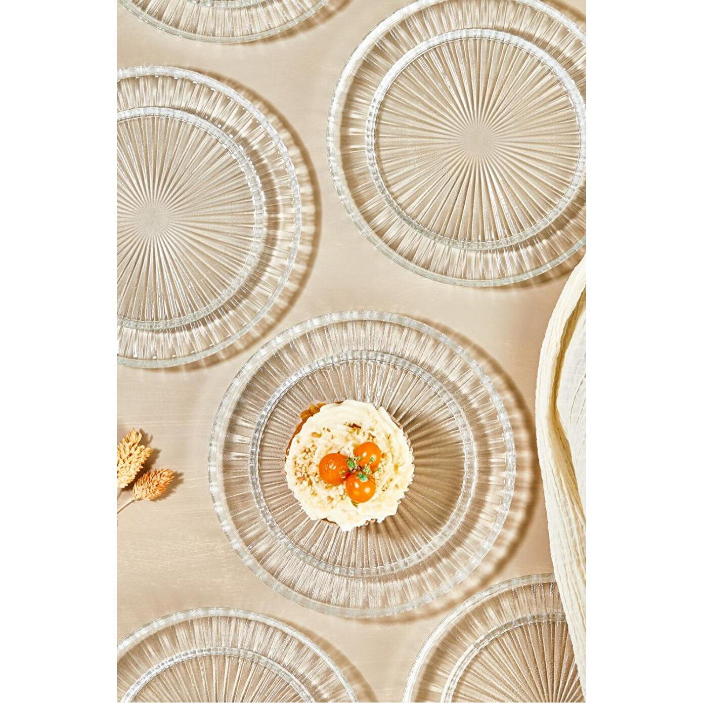 6 adet 17 cm pasta/kek/tatlı tabağıSofranıza zarafet ve şıklık katan modern tasarımÖzel günler, çay saatleri ve günlük kullanım için mükemmelDayanıklı cam malzeme ile uzun ömürlü ve pratik kullanım
