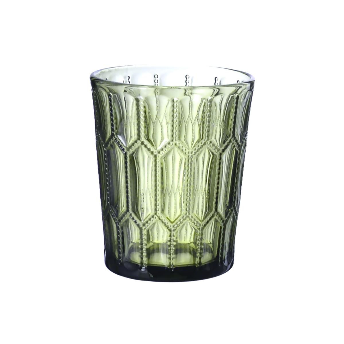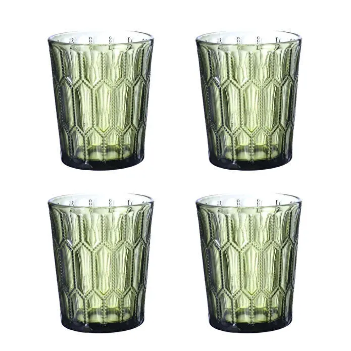 Bardaklar, doğal ve tazeleyici yeşil rengindedir. Silindirik formdaki gövdesi, ışığı güzelce yansıtan geometrik ve kabartmalı bir yüzeye sahiptir.