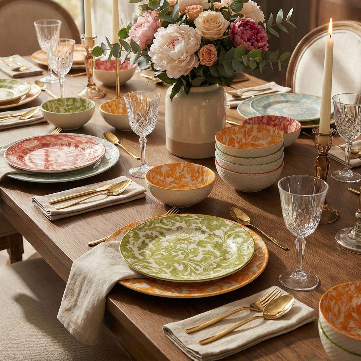 Bu 4'lü set, farklı renklerin bir arada kullanımı sayesinde masanızda dinamik ve neşeli bir "mix-and-match" (karıştır-yakıştır) görünümü yaratır. Özellikle bahar ve yaz konseptli sofralar için mükemmel bir seçimdir.