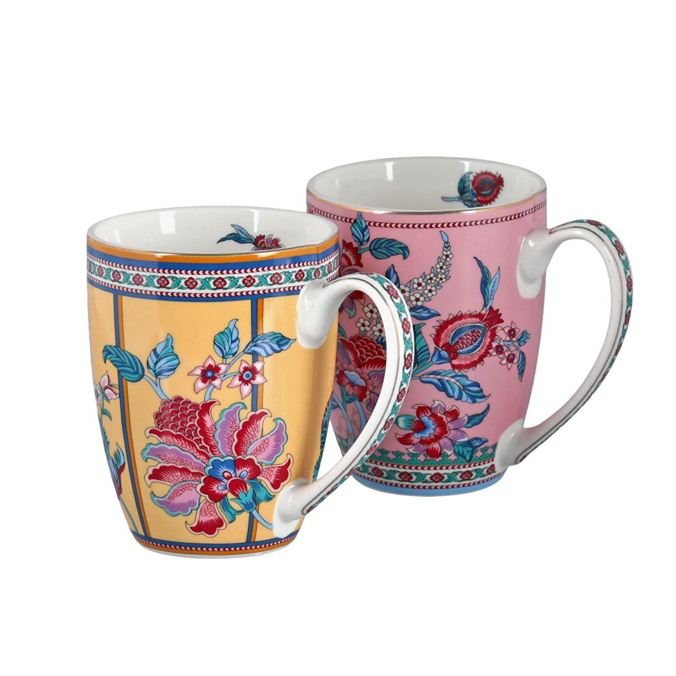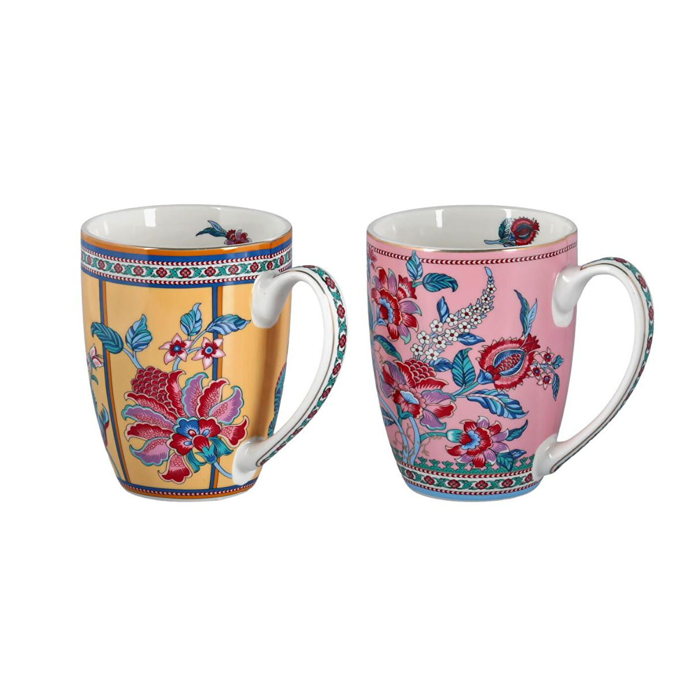 Set, farklı renklerdeki desenleriyle birbirini tamamlar. Biri, sarı zemin üzerine mavi ve kırmızı tonlarında çiçek motifleriyle süslenmişken, diğeri pembe zemin üzerine benzer çiçek desenlerine sahiptir.