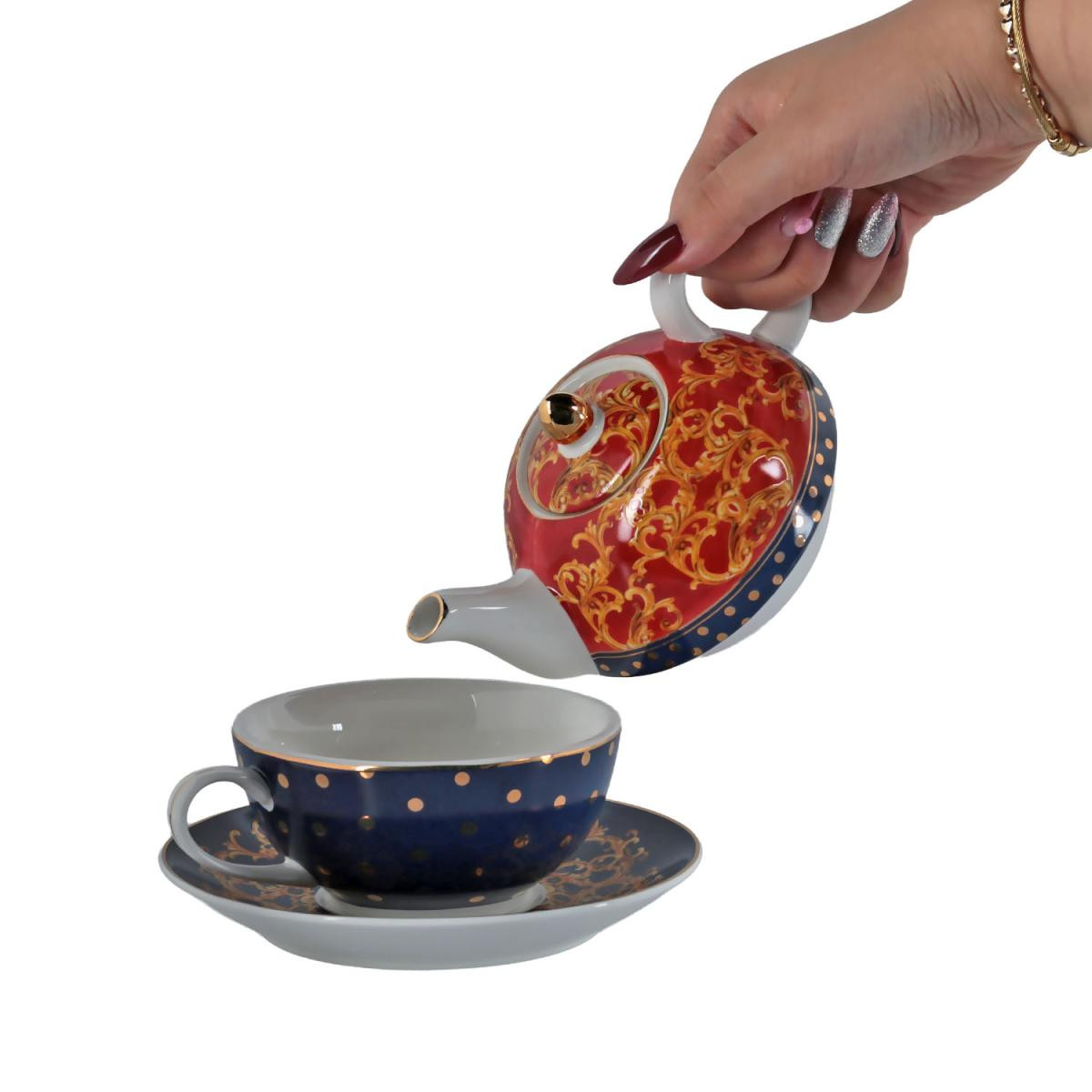 Lucky Art Clarissa Bone China Porselen Mavi Beyaz Naturel Barok Desenli Tek Kişilik Demlik & Fincan Seti, zarif tasarımıyla çay saatlerinizi şıklıkla taçlandırır.Mavi ve beyaz tonlarındaki naturel barok desenler, sofistike bir estetik yaratırken, setin hem geleneksel hem de modern bir havası vardır.Tek kişilik demlik, ideal büyüklükte olup çayınızı rahatça demlenip servis etmenizi sağlar, uyumlu bir çay fincanı ise şık bir içim deneyimi sunar. Dayanıklı ve kaliteli Bone China porselen malzeme, uzun ömürlü kullanım sunar ve kolayca temizlenebilir. Hem günlük kullanımda hem de özel davetlerde mükemmel bir tercih olan bu set, sofralarınıza zarif bir dokunuş ekler ve çay keyfinizi özel kılar.