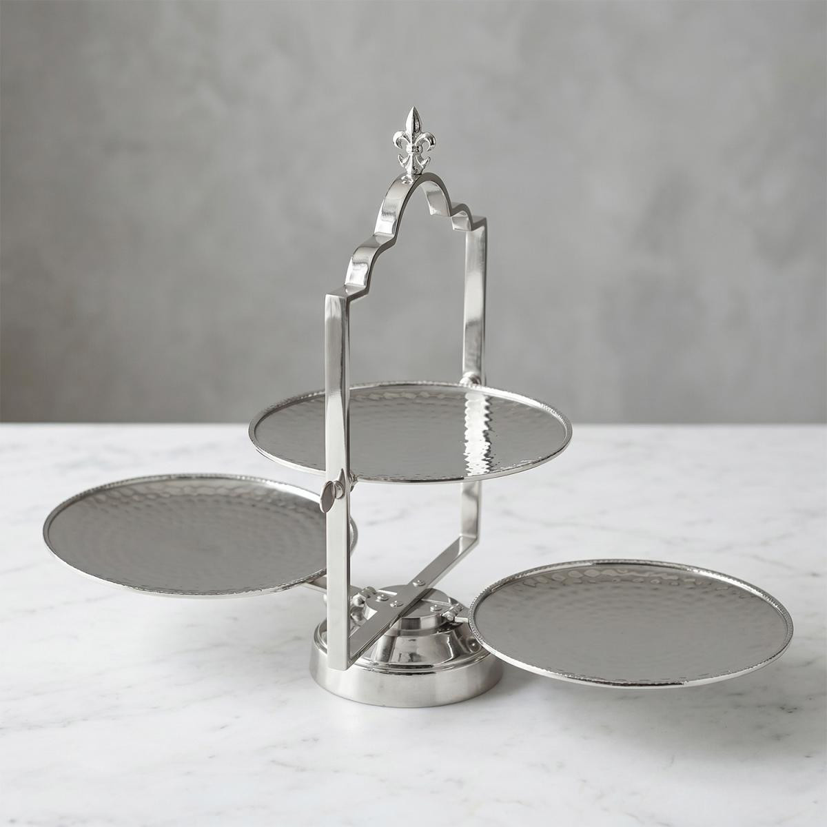 Sunumda Görkemli Final: Dekoratif Üçlü Paslanmaz Çelik Katlı Sunumluk 41 cm