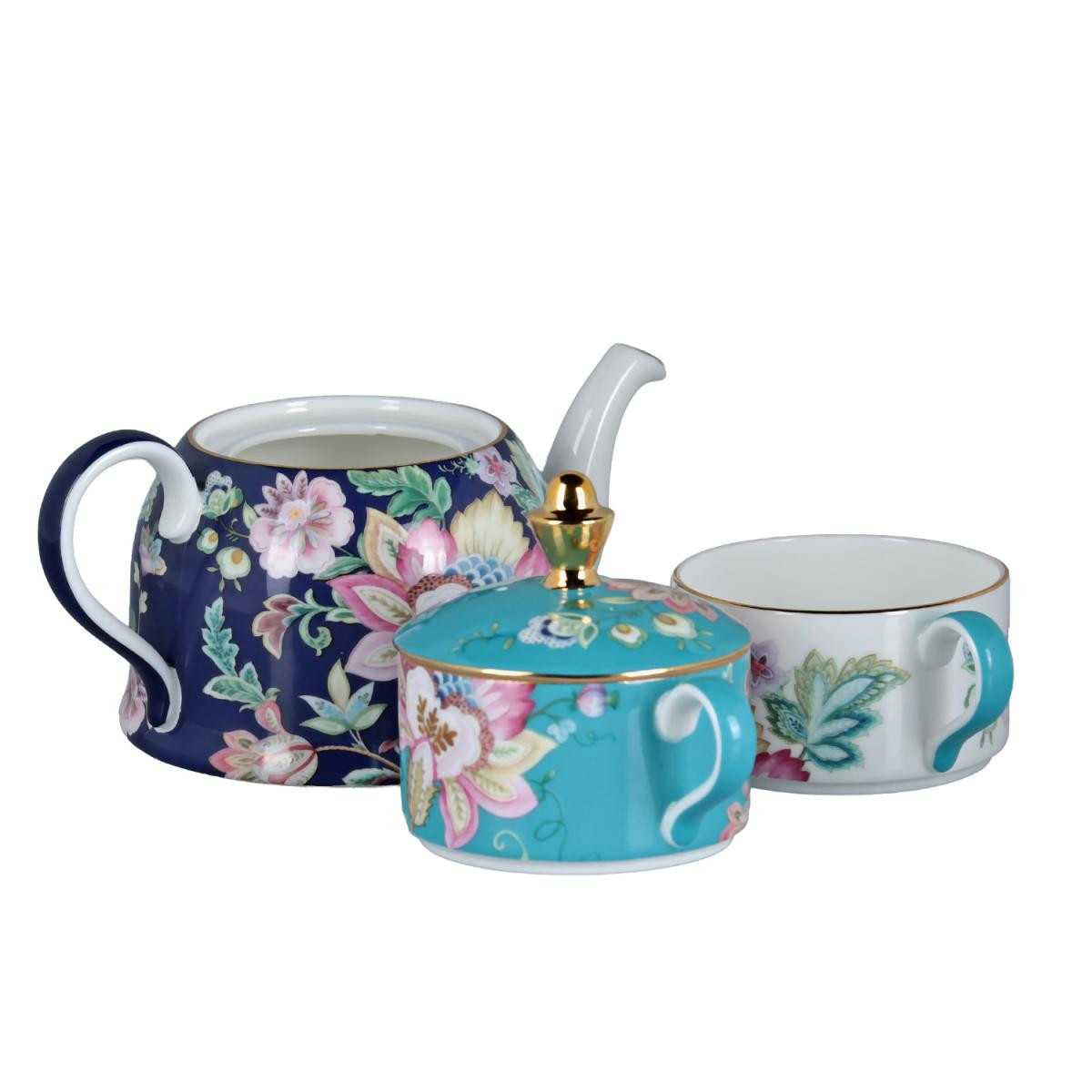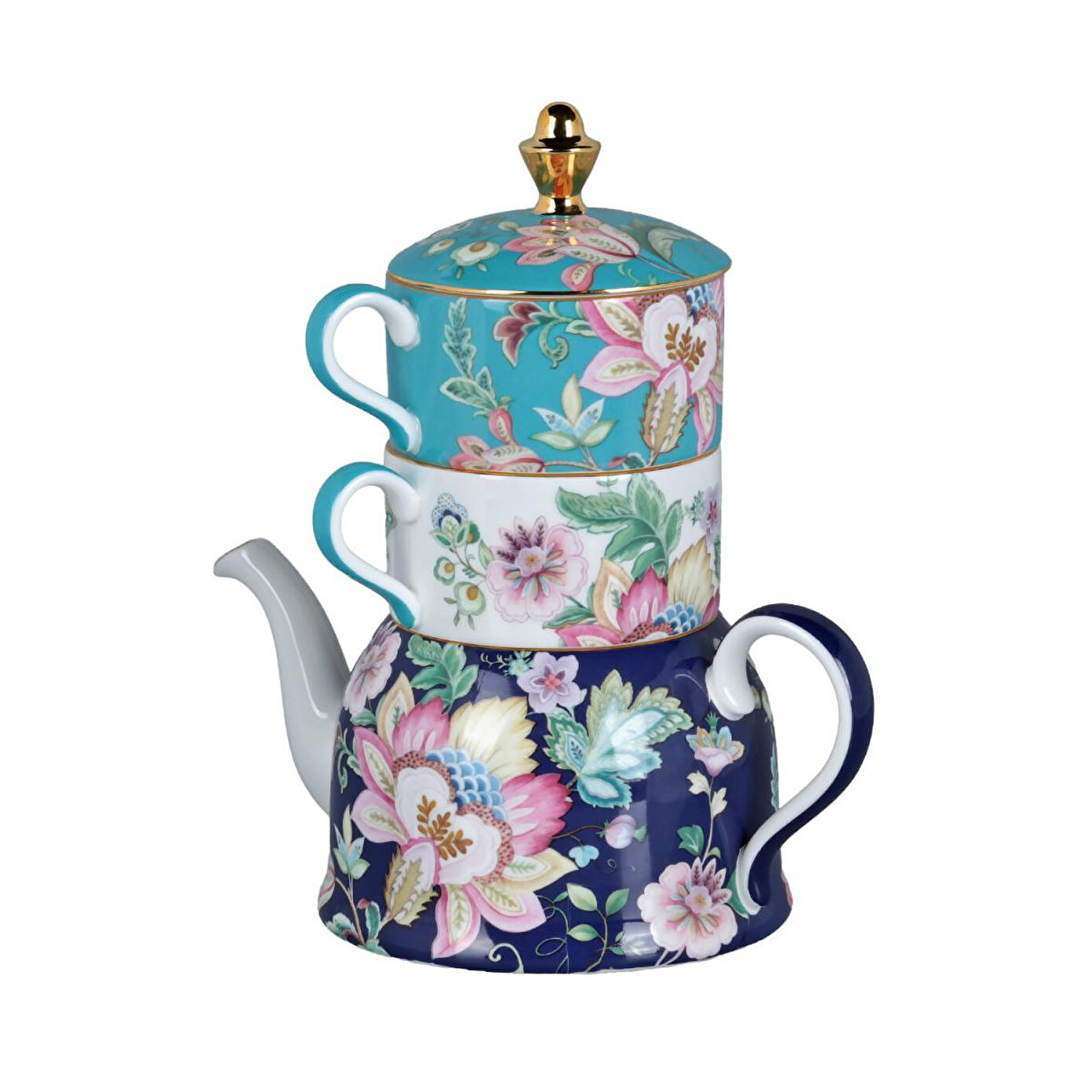 Set İçeriği: 1 adet demlik, 2 adet fincan ve demlik kapağından oluşan 3 parçalı kompakt set.