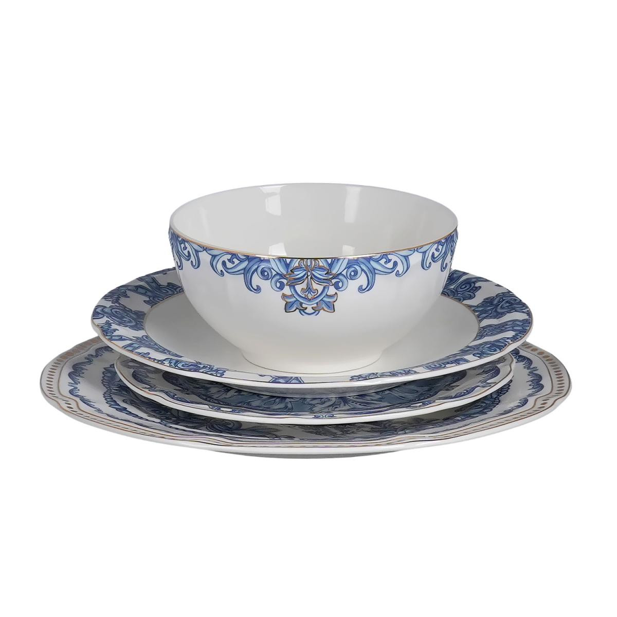Lucky Art Florance Mavi&beyaz Desenli New Bone China Porselen 24 Parça Yemek Takımı