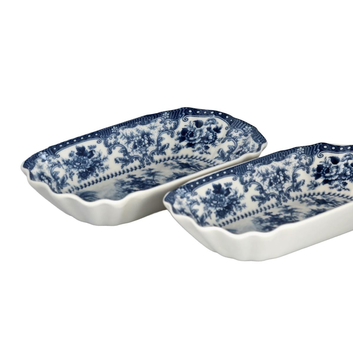 Florantine 2’li Sunum Tabak Seti, klasik mavi-beyaz porselenin zarifliğini ve nostaljik desenlerini küçük ikramlarınıza taşıyor. 17 cm boyundaki bu tabaklar, meze, atıştırmalık veya tatlı sunumları için ideal olup, sofranıza zamansız bir asalet katar.