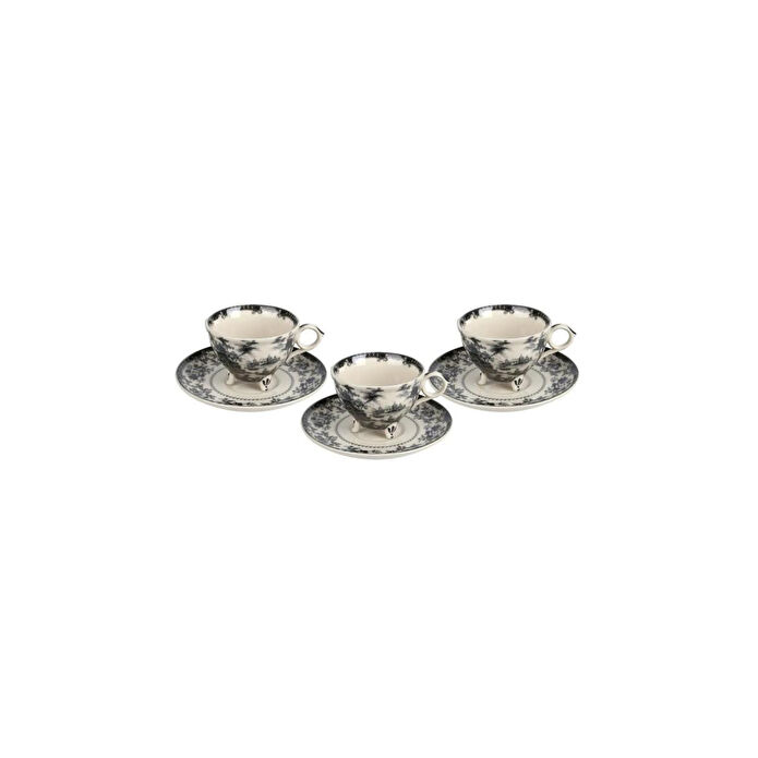 Lucky Art Florantıne 6Lı Ayaklı Çay Fincanı Set Siyah