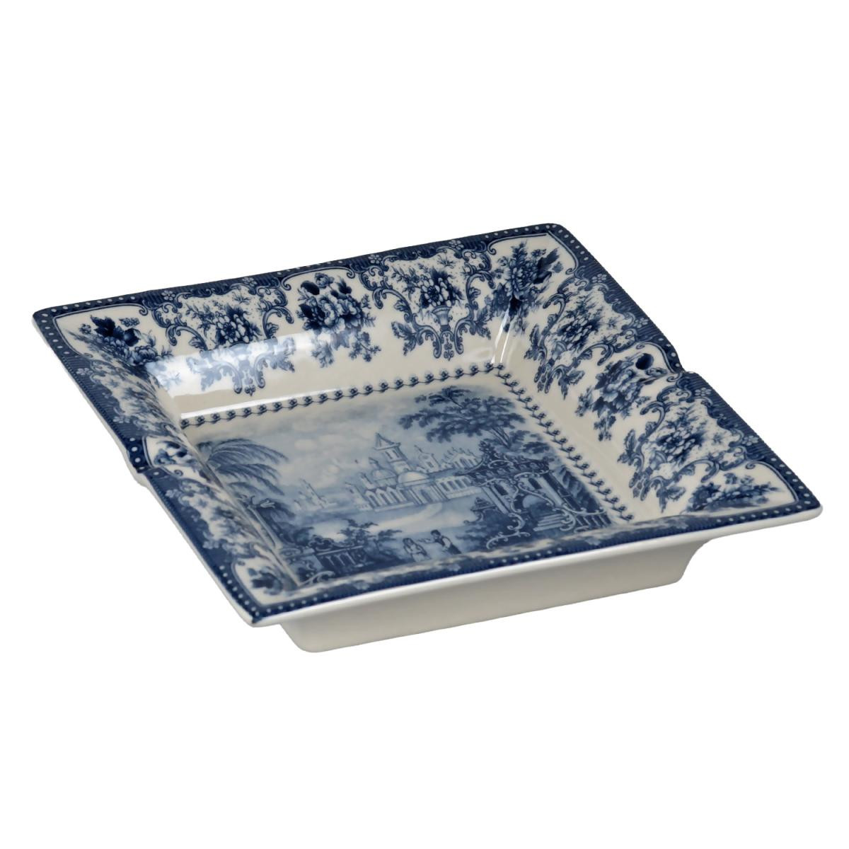 Kül tablasının tüm yüzeyi, Florantine koleksiyonuna özgü, yoğun mavi renkte manzara veya pastoral motiflerle süslenmiştir. Detaylı desenler, ürüne geleneksel ve zengin bir görünüm verir.