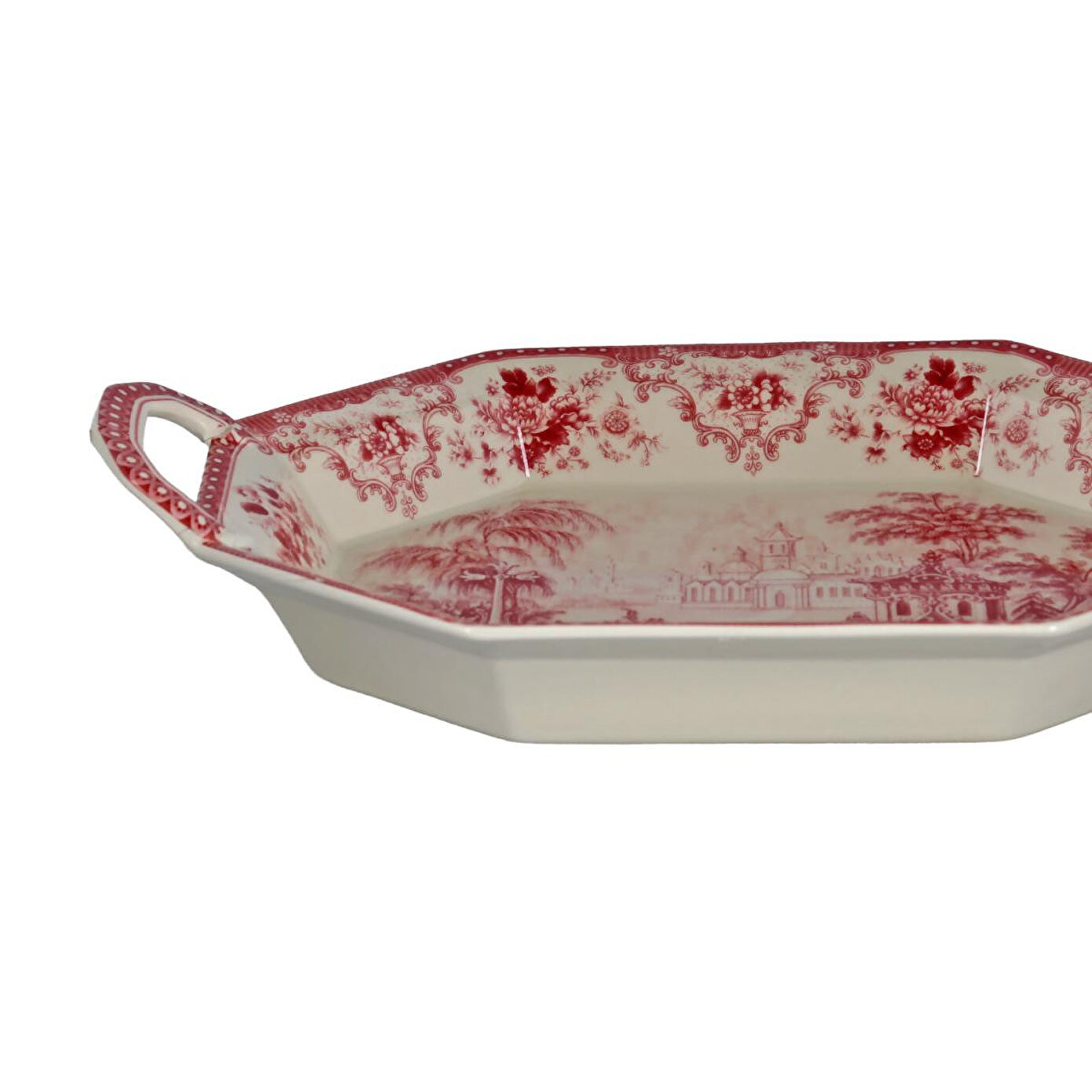 Porselenin dayanıklı yapısı sayesinde tepsi, ağır sunumlara ve kullanıma karşı dirençlidir. Entegre kulpları, tepsiyi taşımayı kolaylaştırır. Kırmızı-beyaz deseni, zamansız estetiğiyle ve canlılığıyla uzun yıllar boyunca güzelliğini korur.