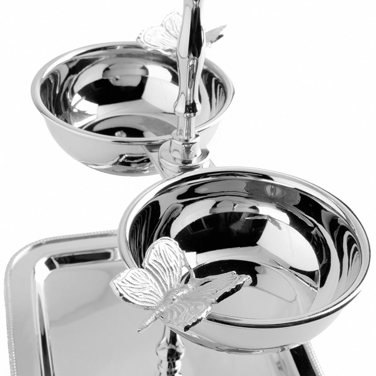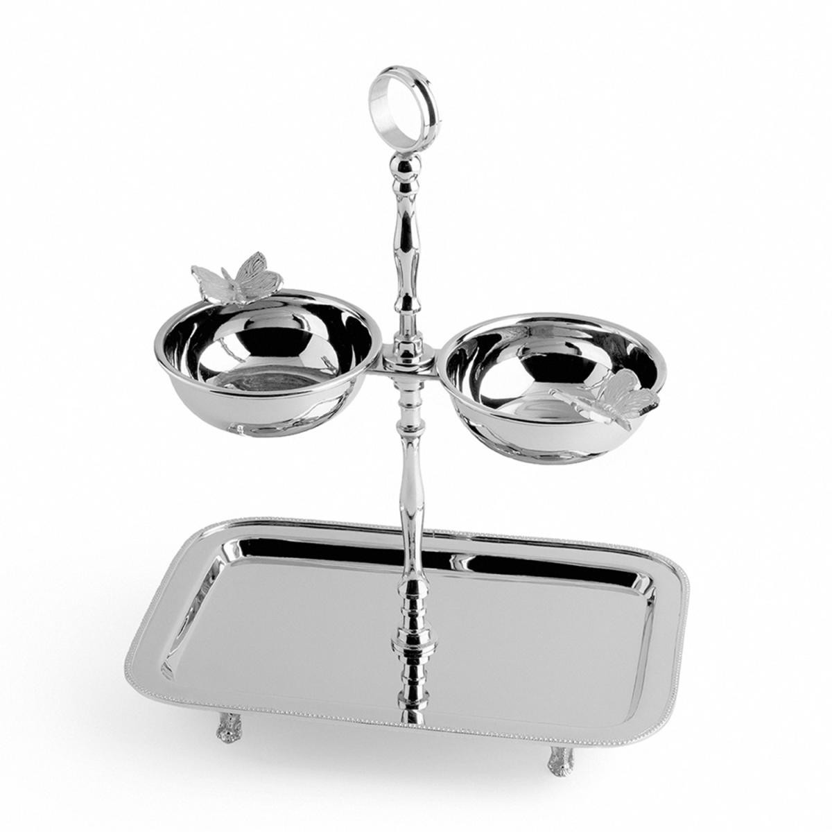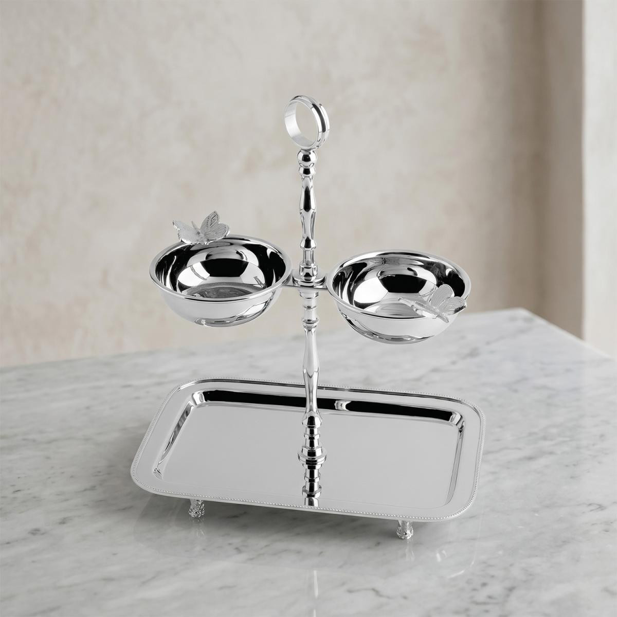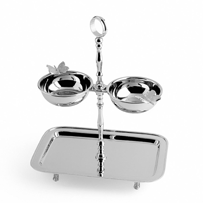 Sunumda Çok Yönlü Zarafet: Kelebek Detaylı Katlı Çelik Tepsi ve Çerezlik Seti