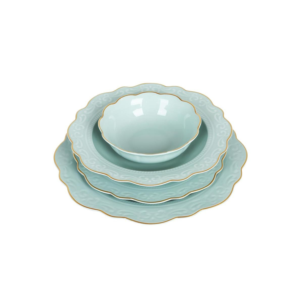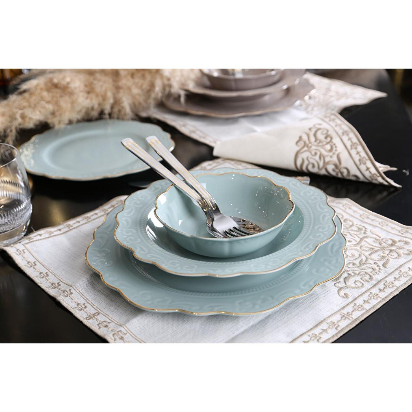 Lucky Art Laurance Mi̇nt Yeşi̇l Renkli̇ New Bone Chi̇na Yemek Takimi 24 Parça