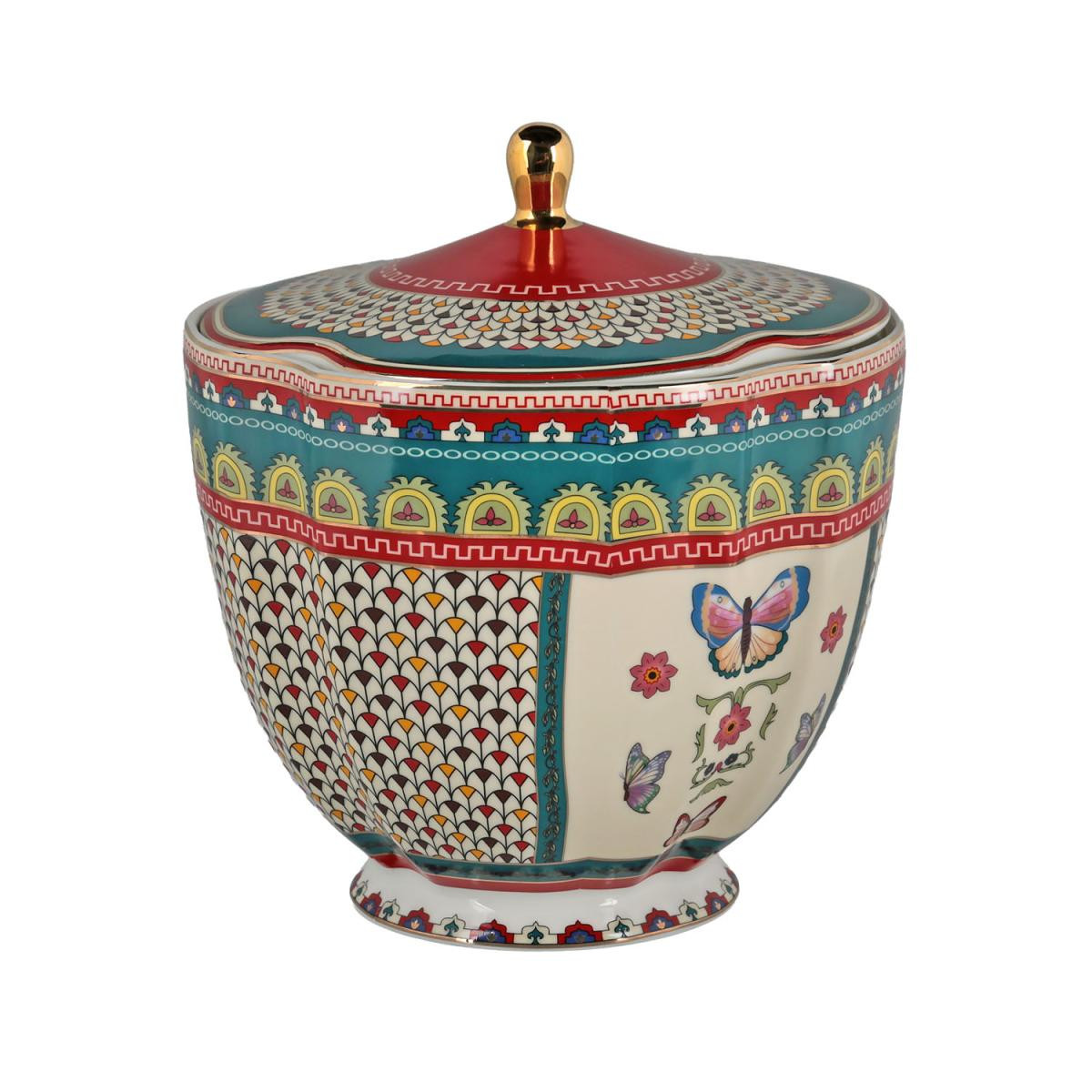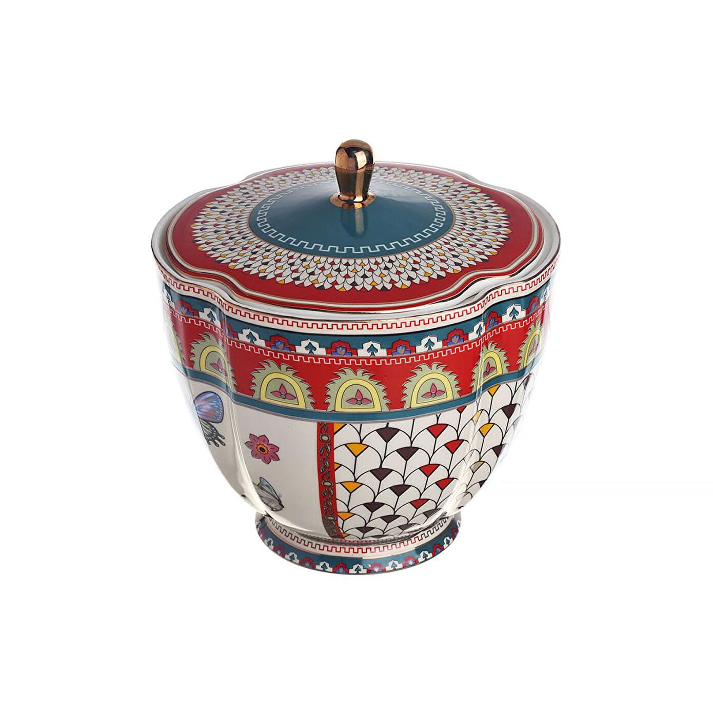 Liora Serisi, çiçek bahçelerinin coşkusunu, Akdeniz’in sıcak renklerini ve geleneksel desenlerin zarafetini bir araya getiriyor. Her bir parça, el işçiliğini andıran ince detaylarla bezenmiş; kırmızı güller, mavi çiçekler ve altın kıvrımlar, sofranıza adeta bir sanat eseri gibi yerleşiyor. Canlı renklerin enerjisi, altın detayların zarafetiyle dengelenirken, farklı desenlerin uyumlu birleşimi sofranıza hem oyunbaz hem de sofistike bir hava katıyor. Günlük yemeklerde pozitif bir enerji, özel davetlerde ise hayranlık uyandıran bir şıklık sunuyor. Her set, kendi deseninde tasarlanmış şık kutusuyla geliyor; böylece hem kendinize hem de sevdiklerinize unutulmaz bir hediye oluyor. Fiora ile sofralarınız bir hikâye anlatıyor. Ürün İçerik : 1 Ad Kavanoz Ölçü : 14 cm Malzeme :New Bone Yüksek Kaliteli Porselen New Bone porselen, klasik porselene göre daha ince, hafif ve yüksek ışık geçirgenliğine sahip özel bir seramik türüdür. Parlak beyaz rengi, zarif görünümü ve dayanıklılığı ile sofralarınıza şık bir dokunuş katar. İnce yapısına rağmen sağlamdır ve uzun yıllar ilk günkü ışıltısını korur. Bakım ve Kullanımı : Elde Yıkama Tavsiye edilir.