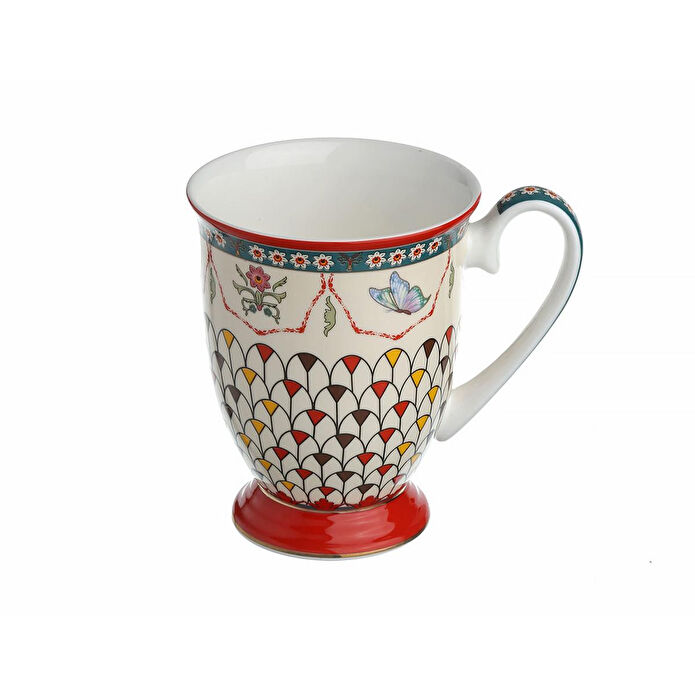 Liora Serisi, çiçek bahçelerinin coşkusunu, Akdeniz’in sıcak renklerini ve geleneksel desenlerin zarafetini bir araya getiriyor. Her bir parça, el işçiliğini andıran ince detaylarla bezenmiş; kırmızı güller, mavi çiçekler ve altın kıvrımlar, sofranıza adeta bir sanat eseri gibi yerleşiyor. Canlı renklerin enerjisi, altın detayların zarafetiyle dengelenirken, farklı desenlerin uyumlu birleşimi sofranıza hem oyunbaz hem de sofistike bir hava katıyor. Günlük yemeklerde pozitif bir enerji, özel davetlerde ise hayranlık uyandıran bir şıklık sunuyor. Her set, kendi deseninde tasarlanmış şık kutusuyla geliyor; böylece hem kendinize hem de sevdiklerinize unutulmaz bir hediye oluyor. Fiora ile sofralarınız bir hikâye anlatıyor. Ürün İçerik : 1 Ad Kupa Ölçü : 380 cc Malzeme :New Bone Yüksek Kaliteli Porselen New Bone porselen, klasik porselene göre daha ince, hafif ve yüksek ışık geçirgenliğine sahip özel bir seramik türüdür. Parlak beyaz rengi, zarif görünümü ve dayanıklılığı ile sofralarınıza şık bir dokunuş katar. İnce yapısına rağmen sağlamdır ve uzun yıllar ilk günkü ışıltısını korur. Bakım ve Kullanımı : Elde Yıkama Tavsiye edilir.