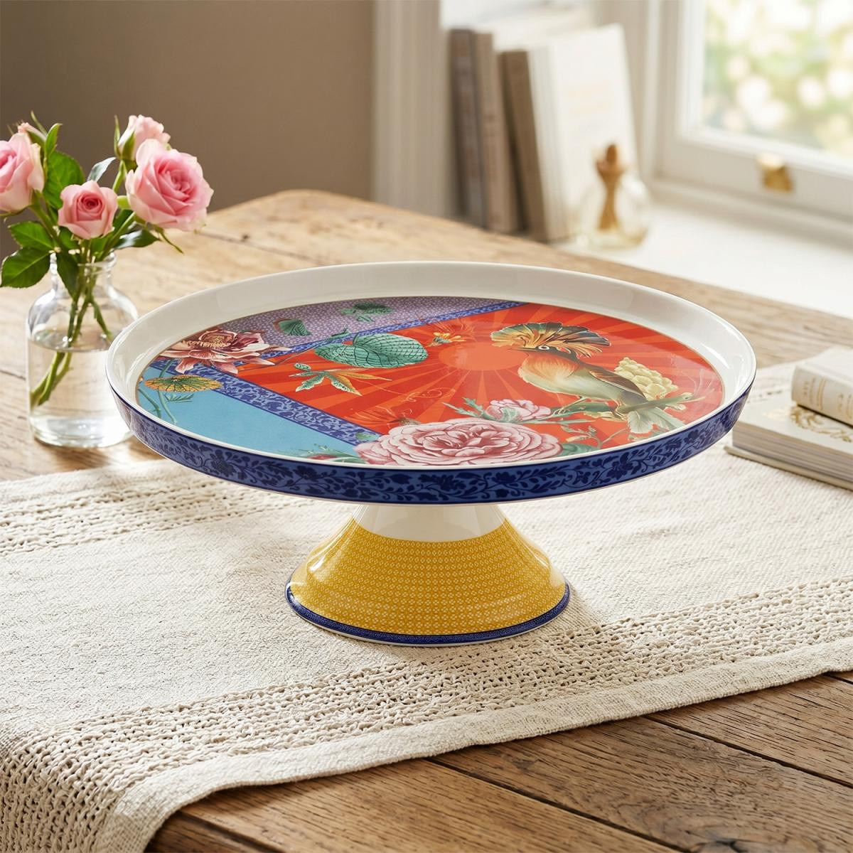 Geniş Sunum Alanı: 25 cm’lik çapı sayesinde şık bir pasta, iştah açıcı kekler veya mini cupcake sunumları için ideal bir sergileme alanı sunar. Geniş yüzeyi, serinin karakteristik canlı renklerini ve tropik kuş motiflerini tüm ihtişamıyla yansıtır.
