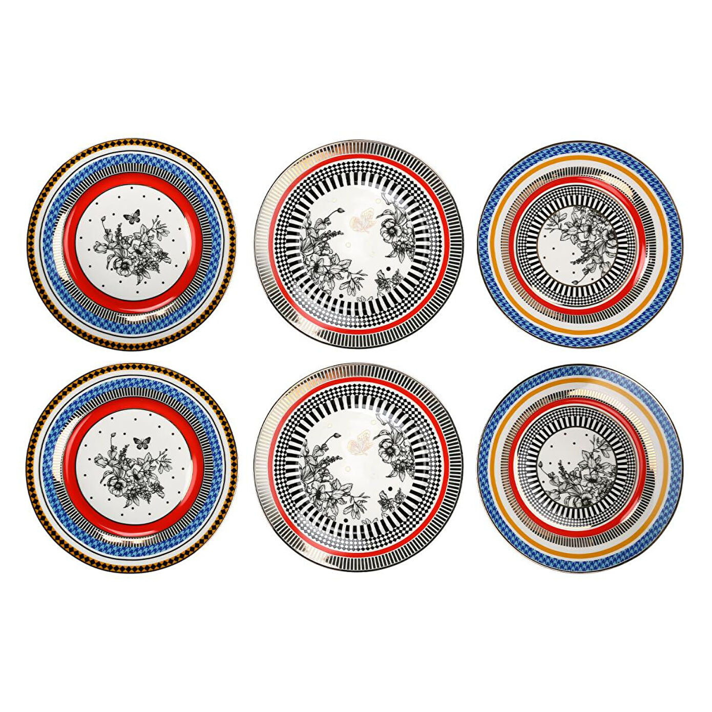 Lucky Art Maggey New Bone China Porselen 27cm 6lı Servis Tabağı el çizimi çiçekler ve zarif kelebek motifleriyle hayat buluyor. Siyah-beyaz detayların enerjik renklerle birleştiği bu koleksiyon, sofistike ve zamansız bir şıklık sunuyor. Sanatsal dokunuşlarıyla her öğünü özel bir deneyime dönüştürüyor. 27 cm çapındaki her bir tabağın ideal boyut hem ana yemeklerinizi hem de tatlı, kek veya atıştırmalıklarınızı şık bir şekilde sunmanızı sağlar. Dayanıklı ve kaliteli Bone China porselen malzemeden üretilen bu set, uzun ömürlü kullanım sunar ve kolayca temizlenebilir. Hem günlük kullanımda hem de özel davetlerde mükemmel bir seçim olan bu set, sofralarınıza zarif bir atmosfer ve şıklık katar. Ebat: 27 cm Malzeme: New Bone China Porselen Bakım ve kullanım: Elde yıkanması tavsiye edilir