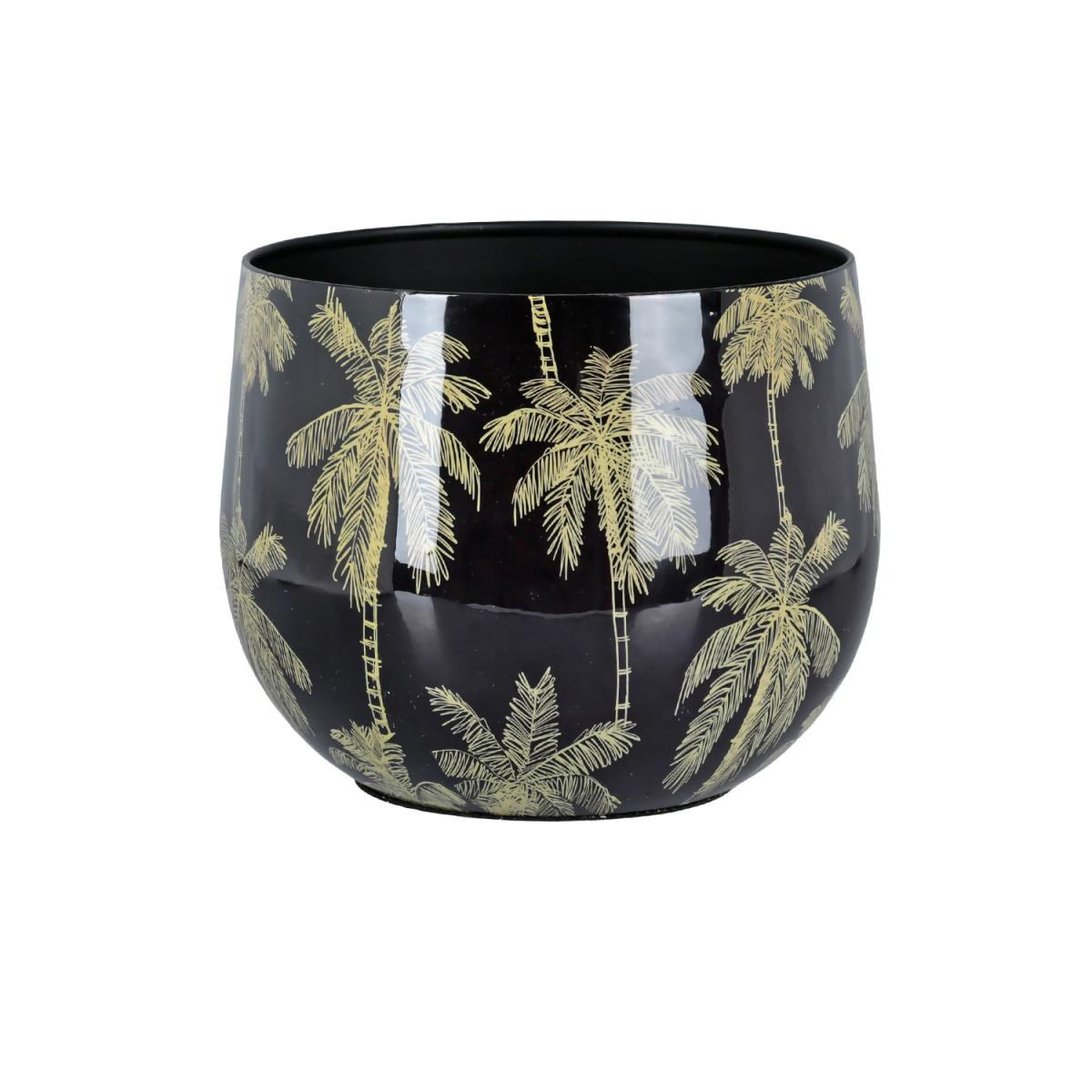 Palm Breeze 3'lü Saksı Seti, egzotik palmiye yapraklarının lüks yorumuyla evinize tropikal bir ihtişam katıyor. Emaye kaplı metal malzemeden üretilmiş bu üç farklı boyuttaki saksı, siyah ve altın tonlarının çarpıcı kontrastıyla bitkilerinizi sergilemek için ideal ve dayanıklı bir çözümdür.