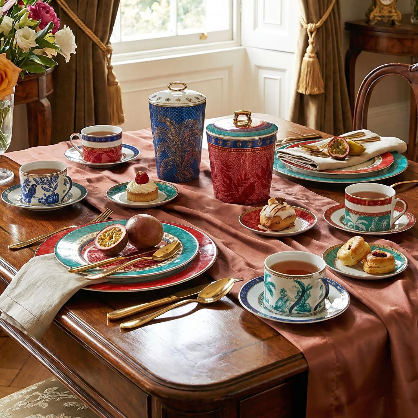Palmera Bone koleksiyonunun bu özel dilimli tasarıma sahip parçası, mutfak düzeninizde sadece bir saklama kabı değil, aynı zamanda göz alıcı bir dekoratif obje olarak öne çıkar. Vahşi doğanın enerjik kırmızı tonlarını ve egzotik kuş figürlerini porselenin asil dokusuyla birleştiren bu kavanoz; altın detaylı kapağı ve sanatsal dekorlarıyla yaşam alanınıza sofistike bir estetik katar.