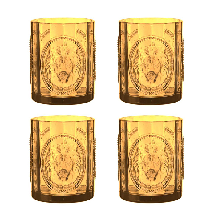 Bardaklar, içten gelen bir ışıltı yayan kehribar (amber) rengindedir. Silindirik formdaki gövdesi, ışığı güzelce yansıtan kabartmalı ve dokulu bir yüzeye ve stilize motiflere sahiptir.
