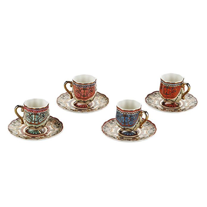 Kahve molanızı mistik bir seremonisine dönüştürmeye hazır mısınız? Rosea serisinin zengin şal desenlerini ve "Mix & Match" renk konseptini, saraylı bir formla buluşturan bu 4'lü set, masanızın en asil parçası olacak.