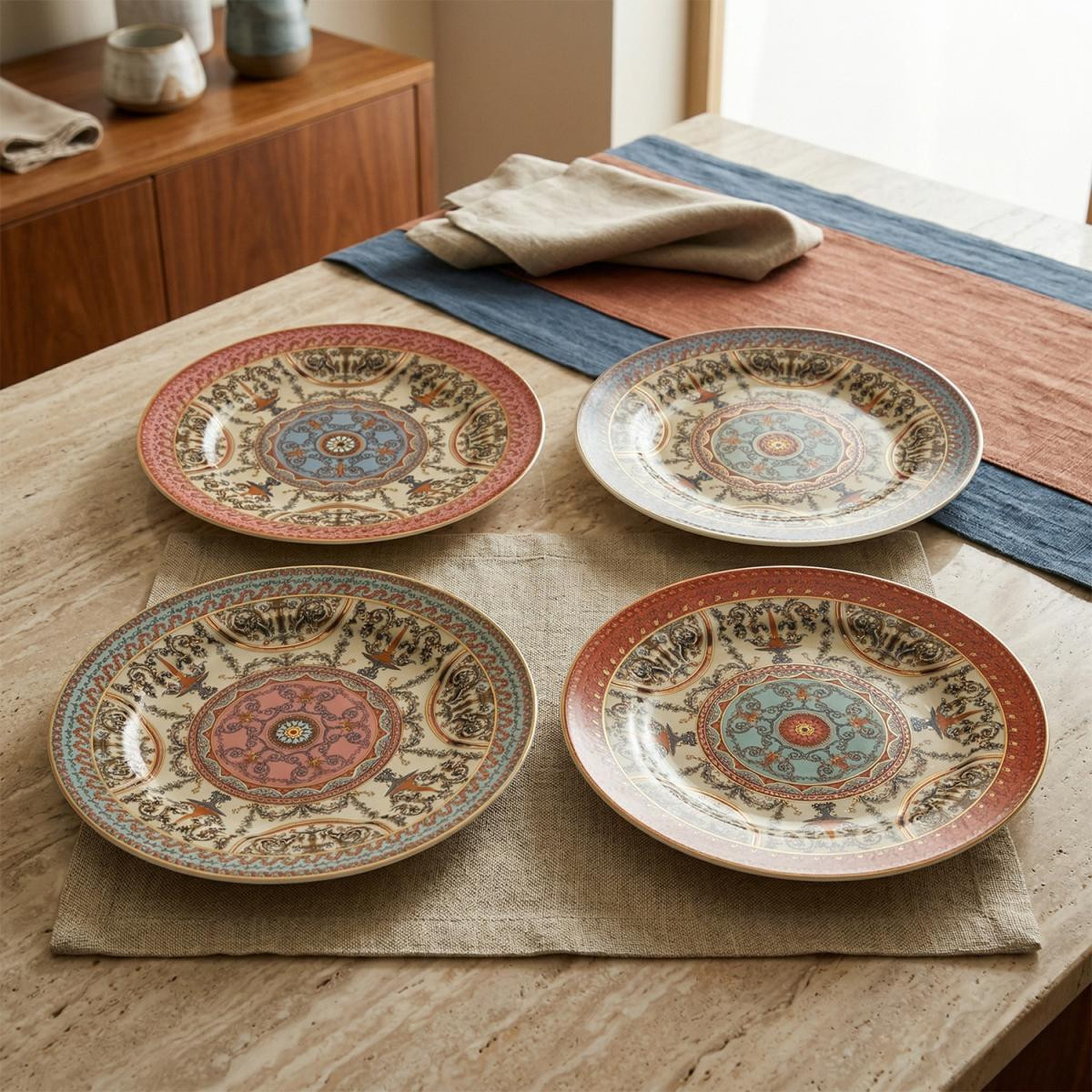 Sofrada Etnik Bir Esinti: Rosea Bone 4’lü Tabak Seti – 20 cm!