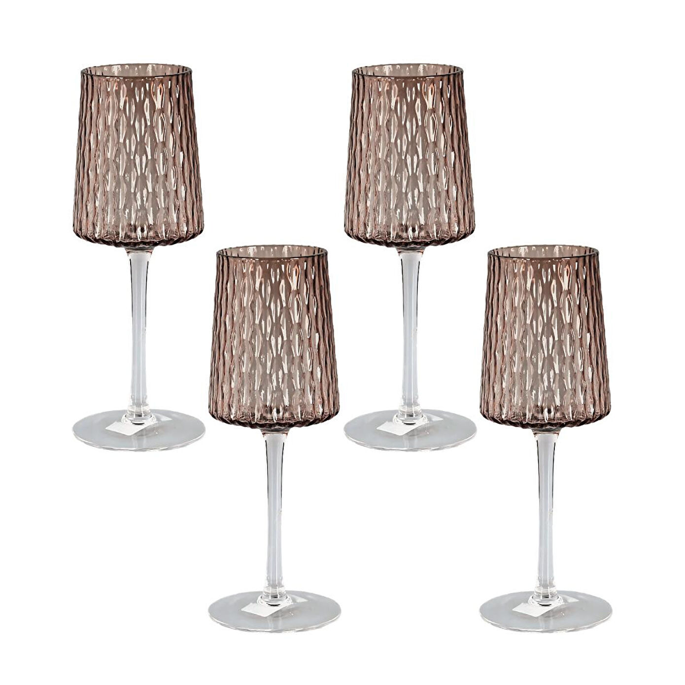 ROSEA 4’lü Cam Kadeh Seti, 340 cc hacmi ve mocha renginin sofistike tonlarıyla sofranıza lüks ve modern bir hava katıyor. Kabartmalı yüzeyi ve zarif ayaklı tasarımı sayesinde, sunumlarınızı estetik bir keyfe dönüştürür.