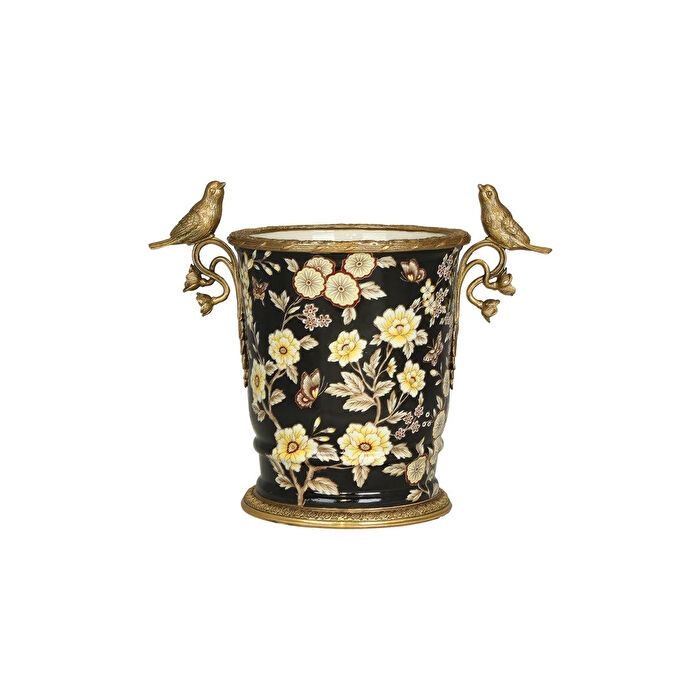 Lucky Art Siyah Cicekli Porselen Vazo 31 Cm