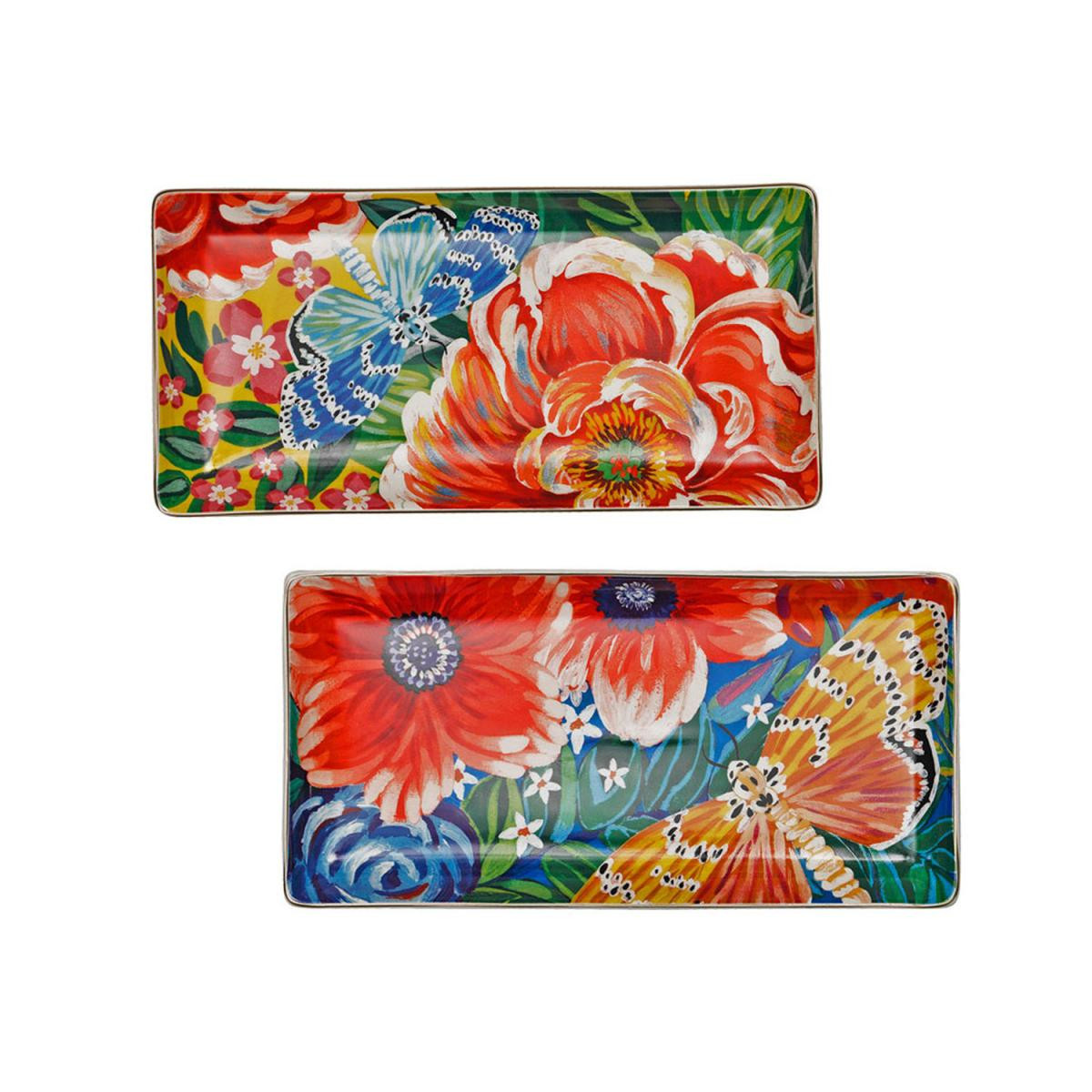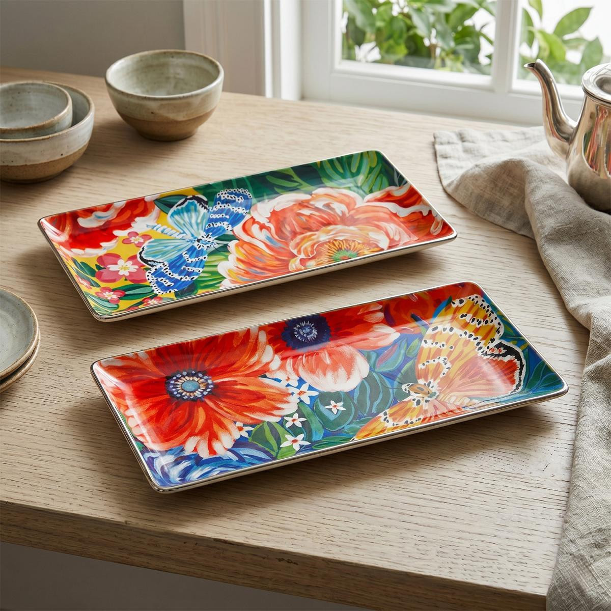 Sunumlarınıza doğanın en canlı renklerini ve modern bir geometriyi davet edin! Vivelle serisinin imzası olan devasa çiçekler ve rengarenk kelebek motiflerini porselenin zarafetiyle buluşturan bu baton tabak seti, masanızın en dinamik ve işlevsel parçası olacak.