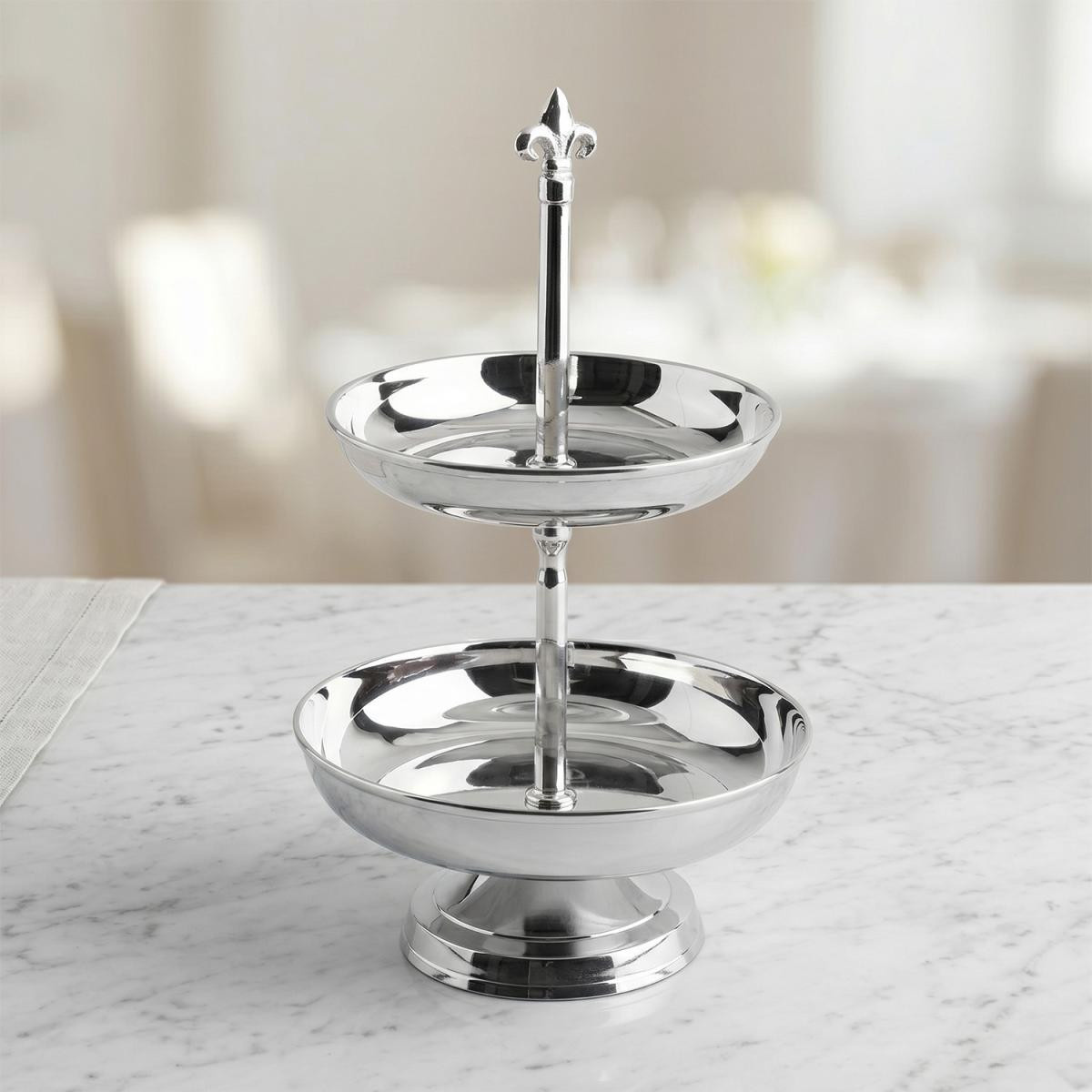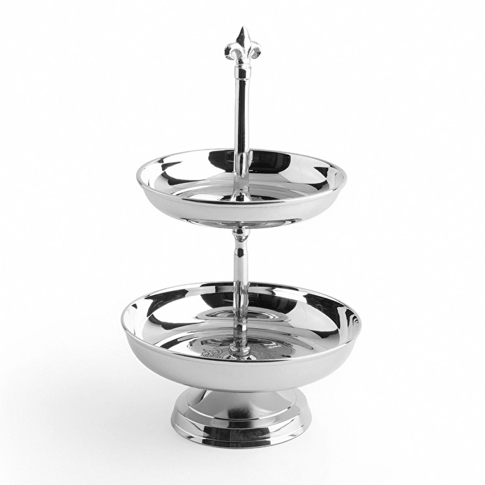 Bu çift katlı sunumluk, masanızda alan tasarrufu sağlarken zevklerinizden ve şıklığınızdan ödün vermediğinizi kanıtlayan zamansız bir parçadır.