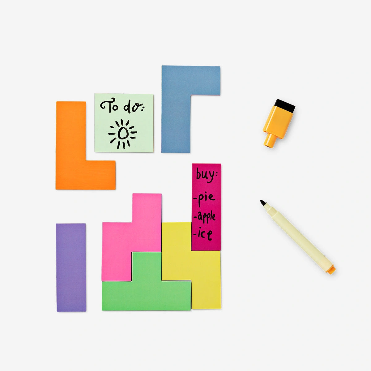 Bu renkli set, canlı tasarımıyla çalışma alanınıza stil katarken, manyetik keçeli kalemi sayesinde yazı yazmayı her an kolaylaştırır. Hem okul hem de ev kullanımı için uygun olan Kalemli Mıknatıslı Yapışkan Kağıt Seti, organizasyon alışkanlıklarınızı kolaylaştırır ve eğlenceli hale getirir. Günlük planlama ve not almayı daha keyifli bir deneyim haline getirmek isteyenler için harika bir seçenektir.