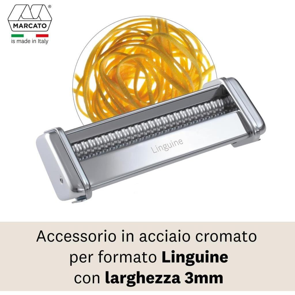 Orijinal İtalyan Marcato tarafından üretilmiştirEloksallı alüminyum silindirler, Atlas 150 makarna makinesi için uygundurLinguine Ceneviz mutfağının tipik bir örneğidir. Düz olduğundan taze soslar veya balıklarla en iyi şekilde birleştirilirMotorla kullanım için uygundur