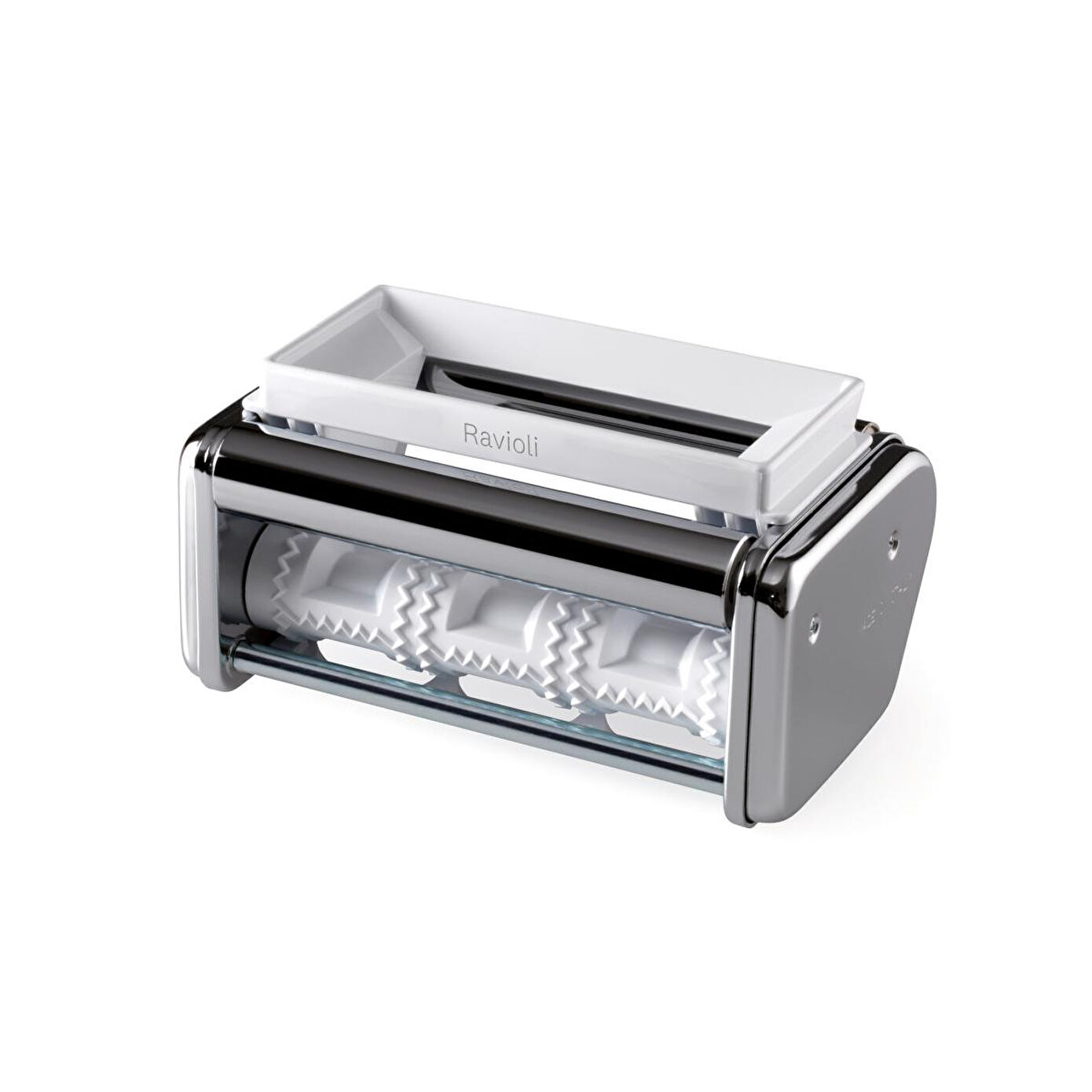 Ravioli (Mantı), 45 mm genişliğinde kare şeklinde doldurulmuş bir makarnadır. Bu özelliğiyle benzersiz bir görünüme sahiptir.Makarna tabakasının tavsiye edilen kalınlığını elde etmek için, makarna makinesinin ayar düğmesindeki 6. konumu kullanabilirsiniz.Ürün, Atlas 150 modeli ile uyumlu olup, kalitesi ve dayanıklılığıyla öne çıkar.Ravioli makarna aparatı, kromajlı çelikten üretilmiştir ve İtalyan malıdır.